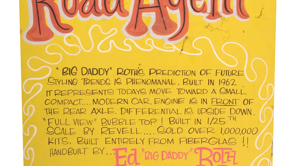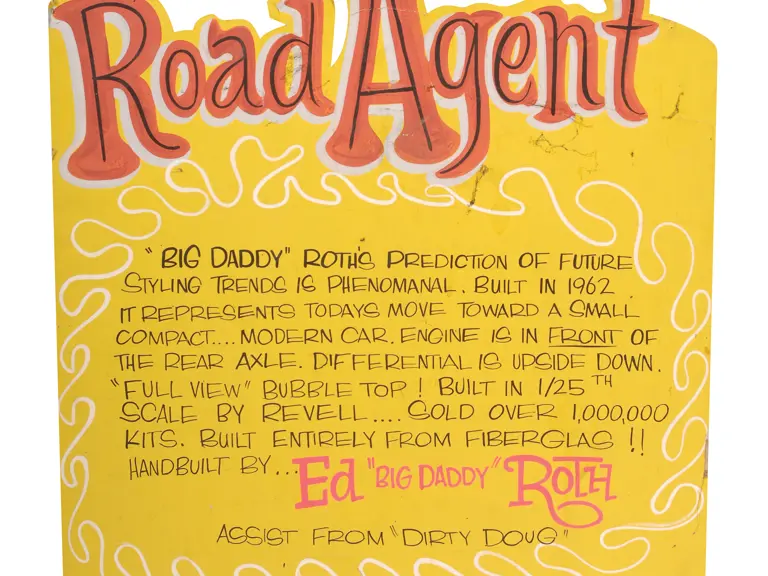 Handcrafted sign painted by Ed �Big Daddy� Roth for display at MovieWorld. 31 x 28 inches.
