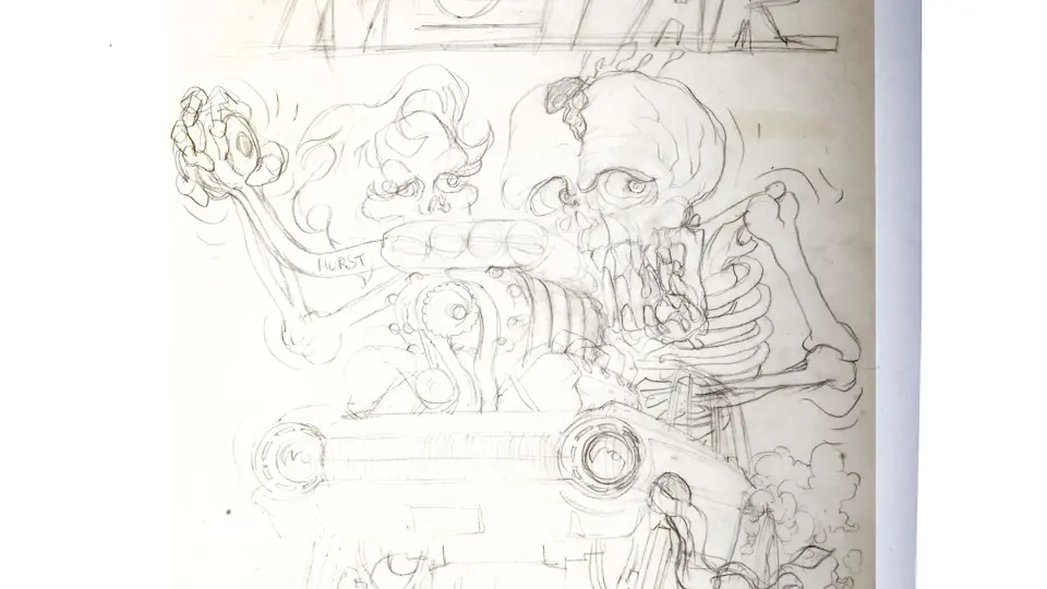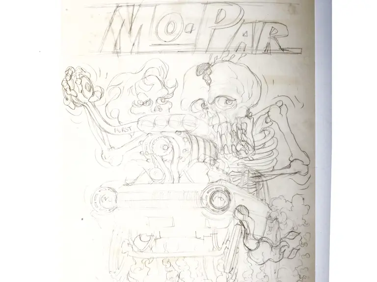 Hand drawn sketch for eventual completion by Ed �Big Daddy� Roth�s stable of artists at Roth Studios. Sheet: 22 x 17 inches.