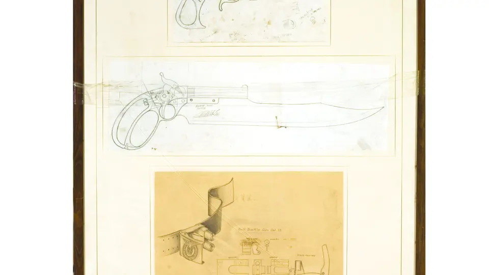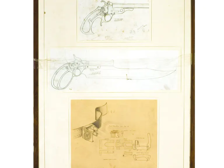 Set of three individual drawings framed together illustrating Von Dutch�s original conceptual designs.