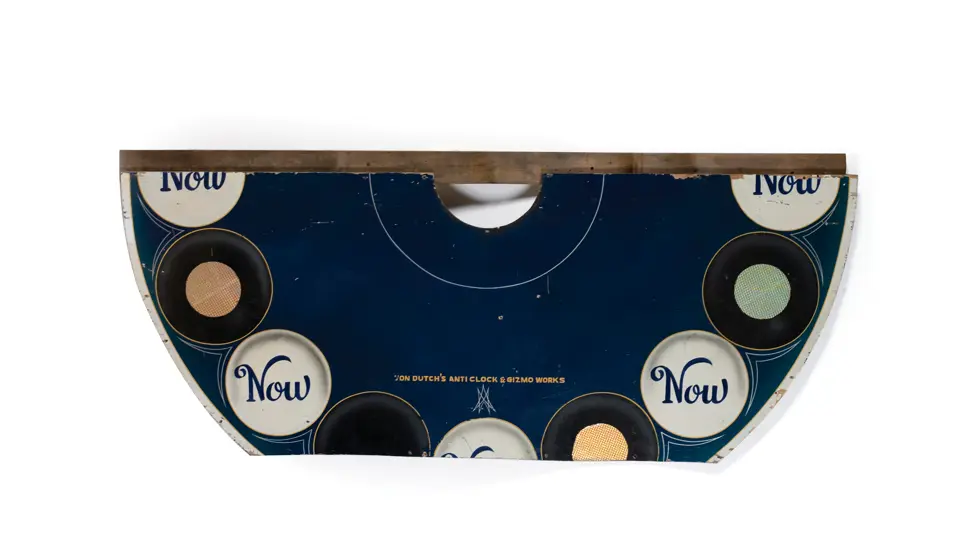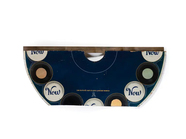 Handcrafted wood sign painted by Von Dutch for display at MovieWorld. Diameter: 40 inches.