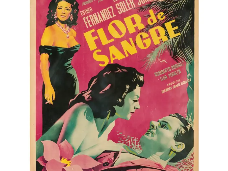 Two vintage movie posters, each in good condition aside from small areas of paper loss along sheet edges, surface soiling, titles include: �Las 3 Alegres Comadres� and �Flor de Sangre�, each shrink wrapped. Each sheet: 37 x 26 inches.
