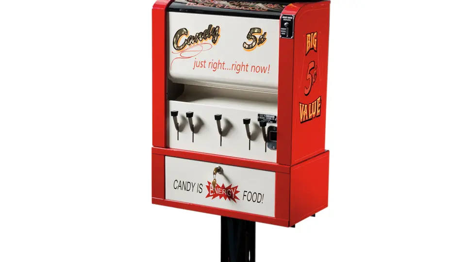 “Just right…right now.” This fully restored, operational machine by William F. Shepherd Inc., of Ohio, vends five candy choices. Dimensions: 19 in. x 73 in. x 15 in.