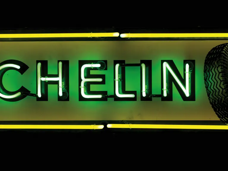 A large and impressive neon sign advertising the classic tire manufacturer, in good condition with the image area unmarked. Dimensions: 70 in. x 17 in.