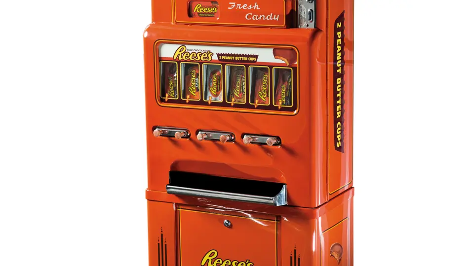 Who cares who got the chocolate in whose peanut butter? Everybody can be happy with this six-column vending machine, which is fully restored and operational. Dimensions: 25 in. x 71 in. x 14 in.