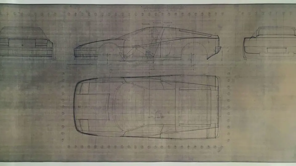1984 as the successor to the Berlinetta Boxer. 87” X 38”, linen backed. Some fold lines and foxing but in otherwise A- condition.