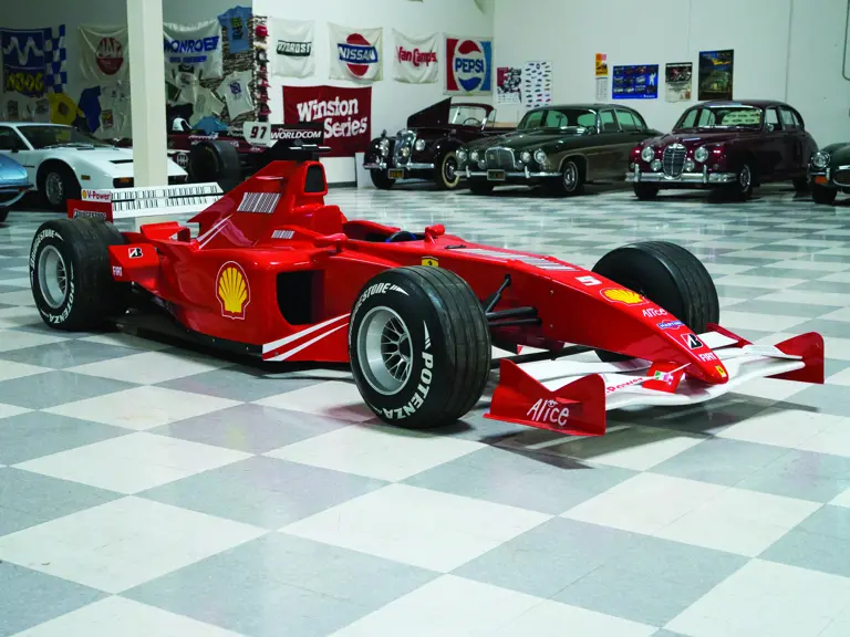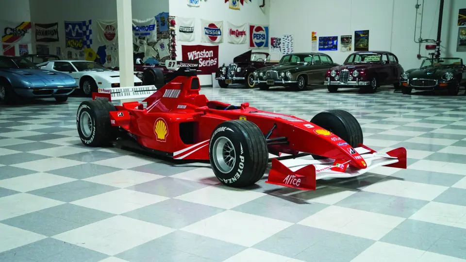 Full size, scale replica F1 race car. Constructed with a steel frame, real wheels and tires and a molded fiberglass body. Car comes with game unit steering wheel ready to be connected to a viewing monitor for game play. Monitor not included.