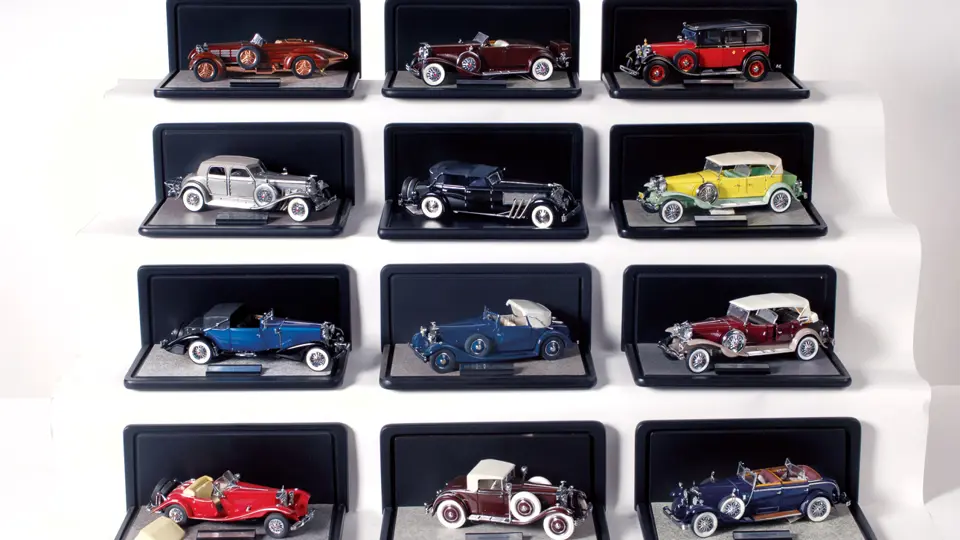 1935 Mercedes-Benz 770K by Franklin Mint (with hang tag), 1930 Duesenberg Durham Tourister by Franklin Mint (with hang tag), 1926 Mercedes-Benz Model K by Franklin Mint (with hang tag), 1930 Duesenberg Model J Durham Tourister by Franklin Mint (with hang tag), 1935 Duesenberg Model J by Franklin Mint (with hang tag), 1940 Duesenberg by Franklin Mint (with hang tag), 1934 Hispano-Suiza J12 Cabriolet by Danbury Mint, 1925 Hispano-Suiza H6P by Franklin Mint (with hang tag), 1935 Mercedes-Benz 500K Special Roadster by Franklin Mint (without hang tag), 1933 Duesenberg Model J Victoria by Franklin Mint (with hang tag), 1933 Duesenberg SJ Twenty Grand by Franklin Mint (with hang tag), 1924 Hispano-Suiza Tulipwood by Franklin Mint (with hang tag). All model cars are accompanied by display cases, paper work and/or documentation. Boxes not included. Scale: 1:24