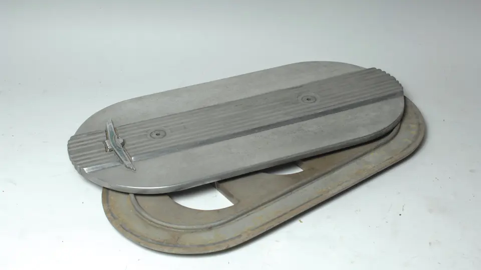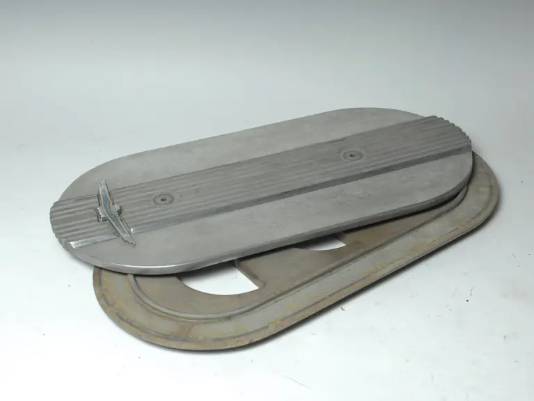 One 1962,63 Thunderbird tri-power breather assembly with emblem.Lot of three Motorcraft NOS tri-power air filters FA-84EDJ9601A.