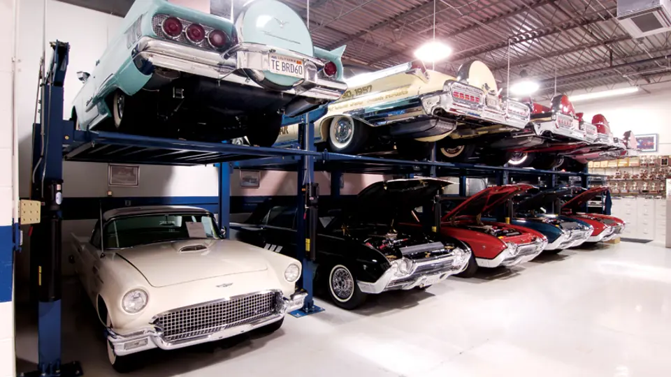 Lot consists of one custom-built car storage system with five solid platforms that may be raised or lowered independently of each other via five sets of controls. The unit is not five separate lifts as two platforms share each post. The entire structure measures 12.5 feet long by 46 feet wide, with each of the five platforms measuring seven feet wide. NOTE: Buyer is responsible to hire a bonded and insured contractor to dismantle, and remove from premises within 30 days of the sale date.