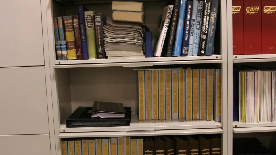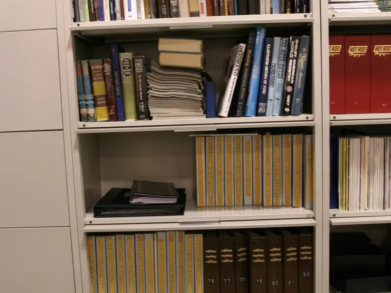 Filing cabinet comes complete with an excellent collection of Ford literature among other prominent publications including the Shelby American World Registry, My Life and Work by Henry Ford, The Secret Life of Henry Ford, Ford The Times The Man and The Company. A complete set of Collectable Automobile magazine from 1984 to 2000, and a large collection of The Early Bird magazine. 36x76x17 inches.