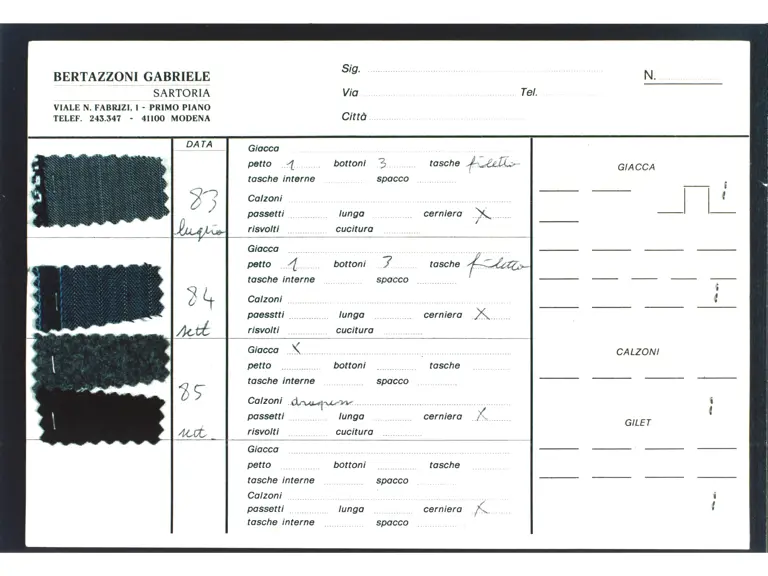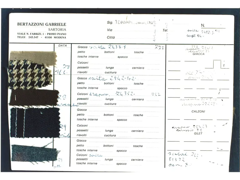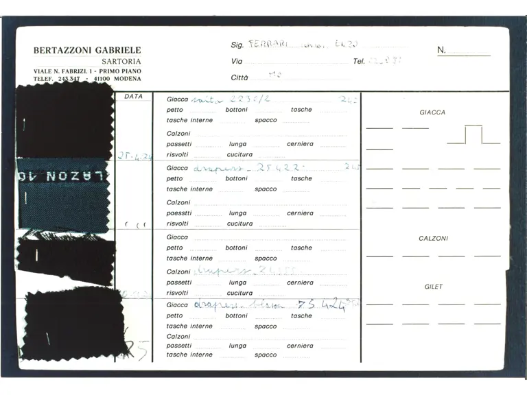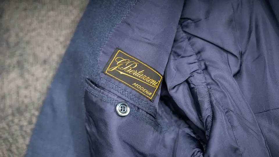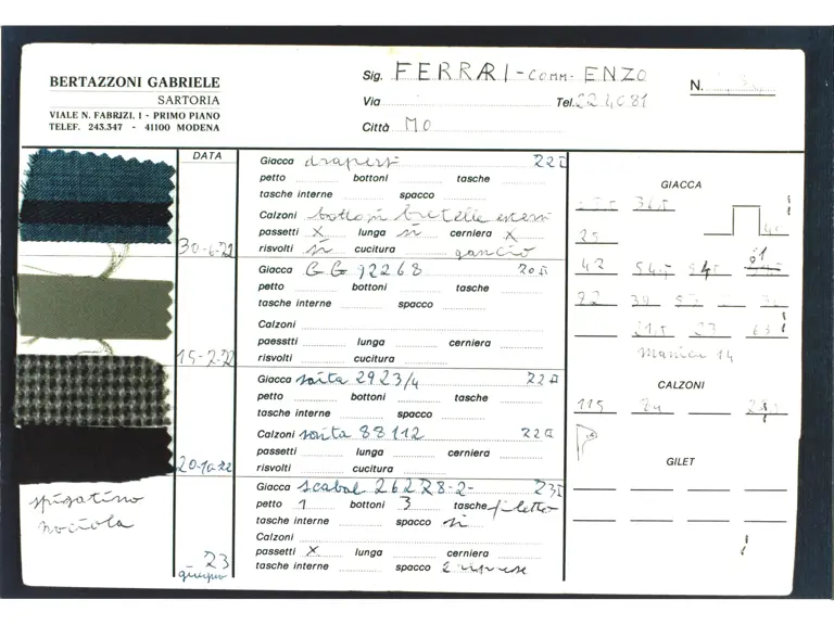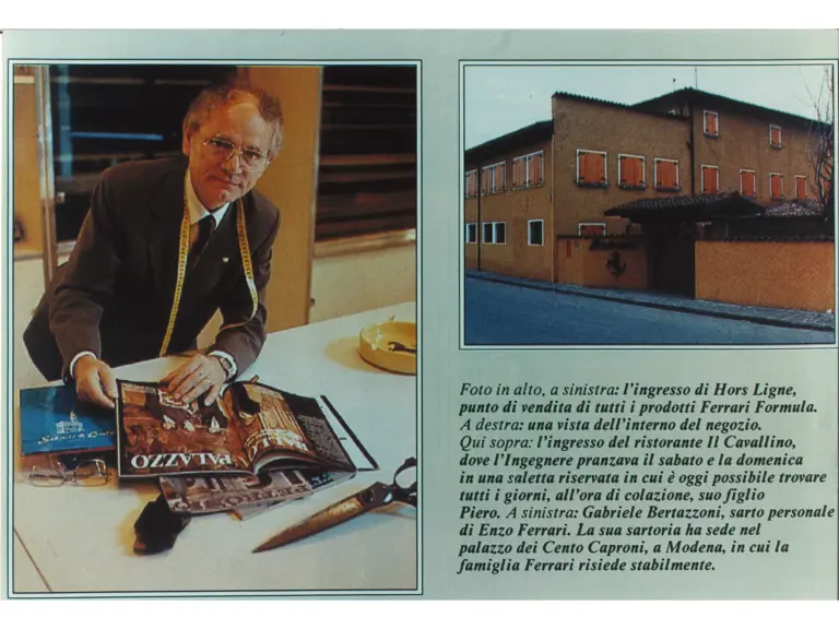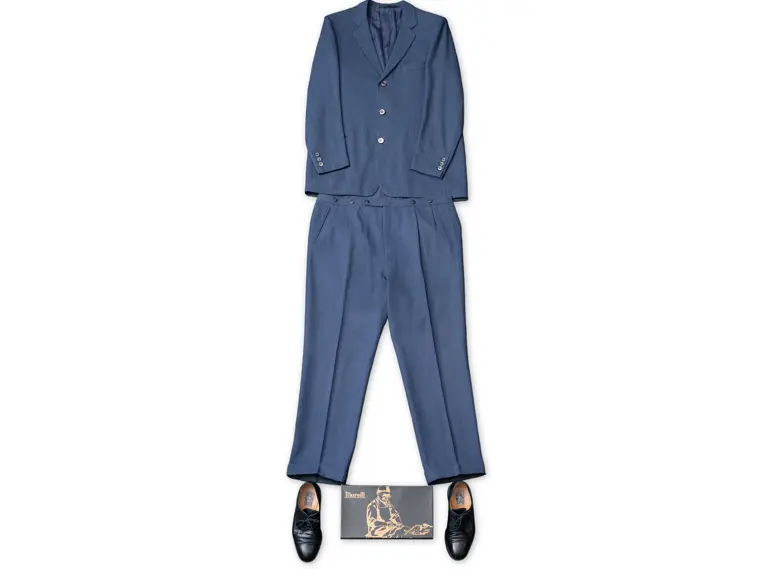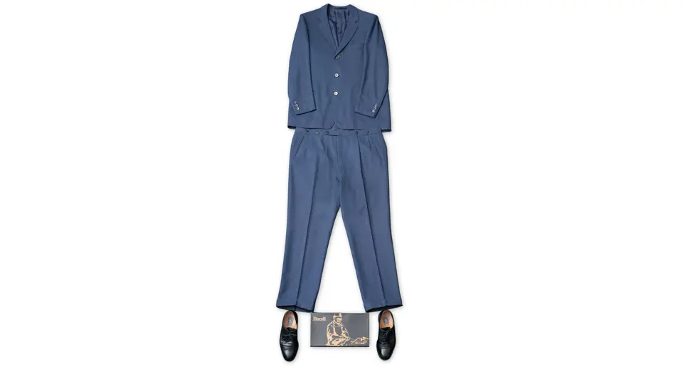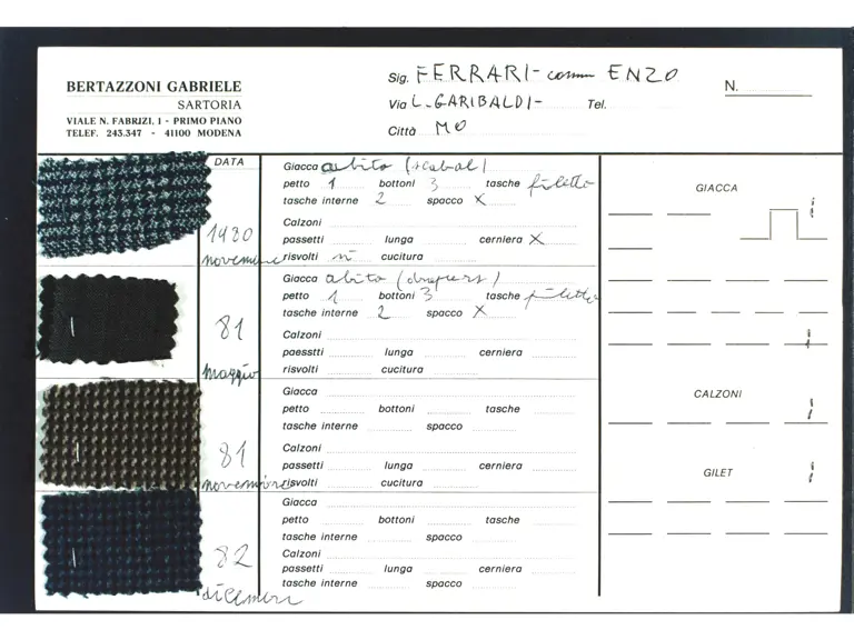 - Two-piece dark blue suit custom-made for Enzo Ferrari by his personal tailor Gabriele Bertazzoni in 1979