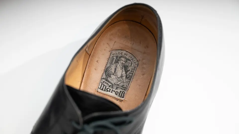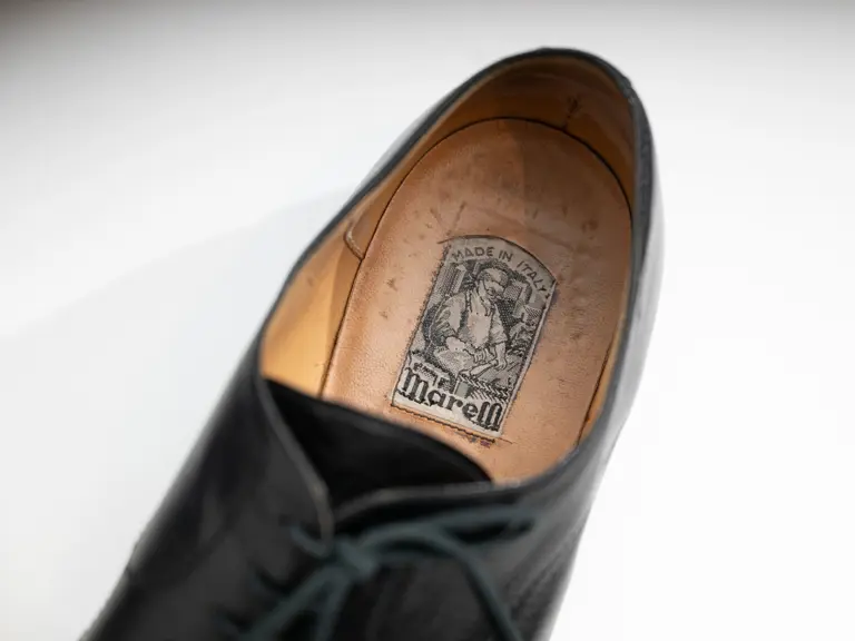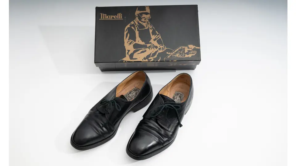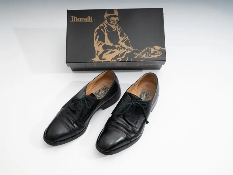 - Marelli black leather shoes worn by Enzo Ferrari circa 1970s–1980s