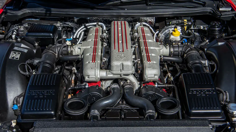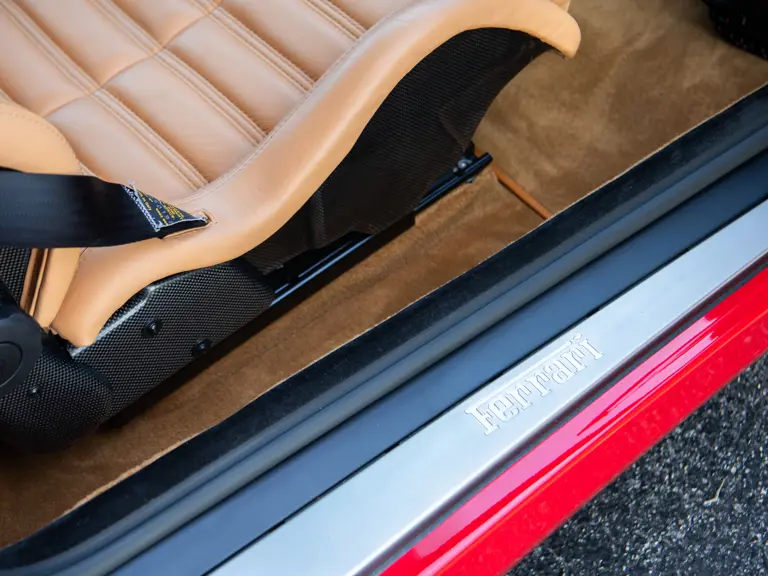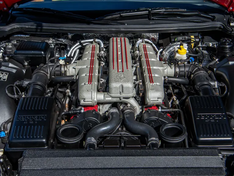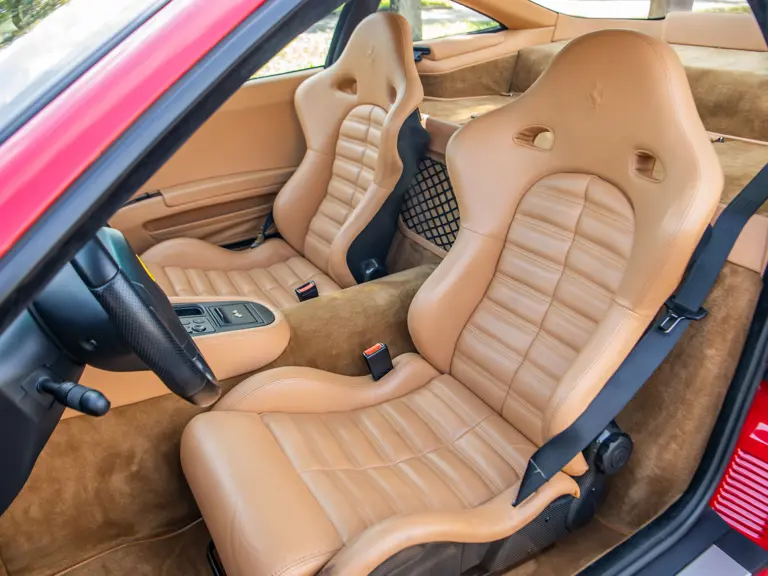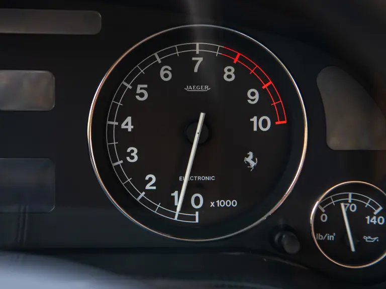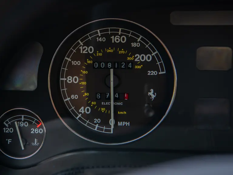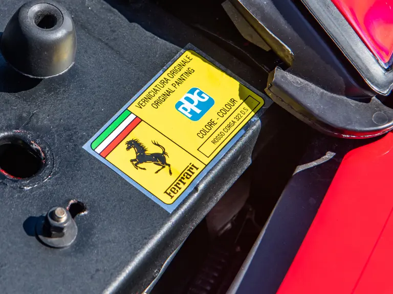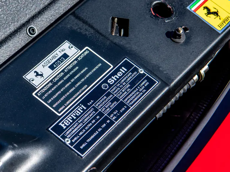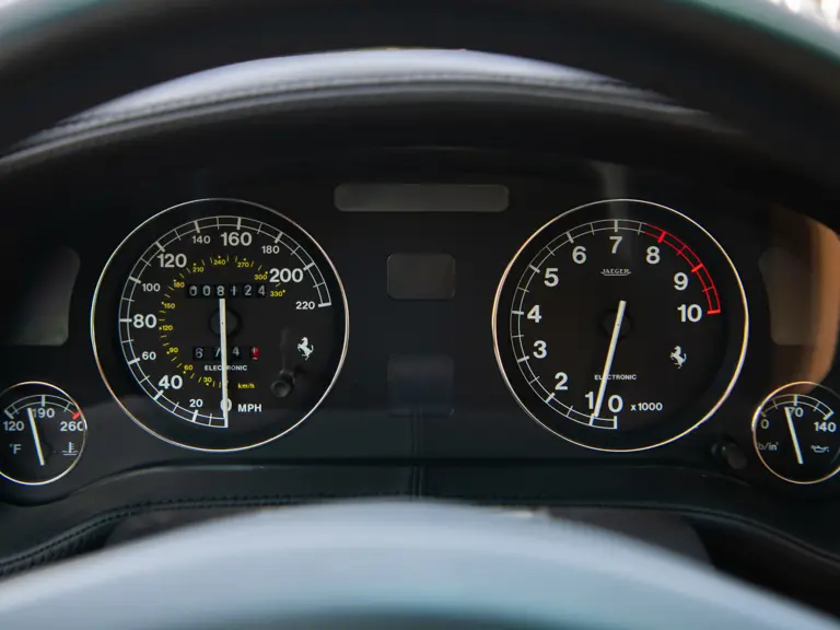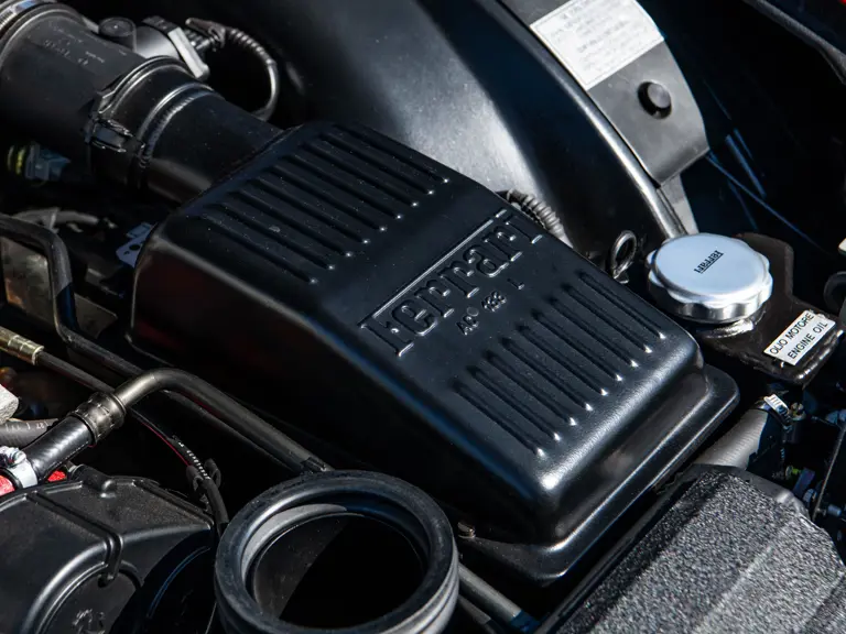 This Ferrari has seen only limited road use from new and displays 8,124 miles at time of cataloguing. It has nevertheless been carefully maintained, with 2019–2025 service invoices on file reflecting the care it has received over the years. In 2022, with the car having covered 6,752 miles from new, NJB Automotive of Westerville, Ohio performed a major service, including replacement of timing belts, tensioners, and accessory belts. Also in 2022, its interior “sticky buttons” were stripped and refinished, and later that year Modern Elix of West Chester, Pennsylvania applied a full exterior protective package to preserve its factory paintwork.