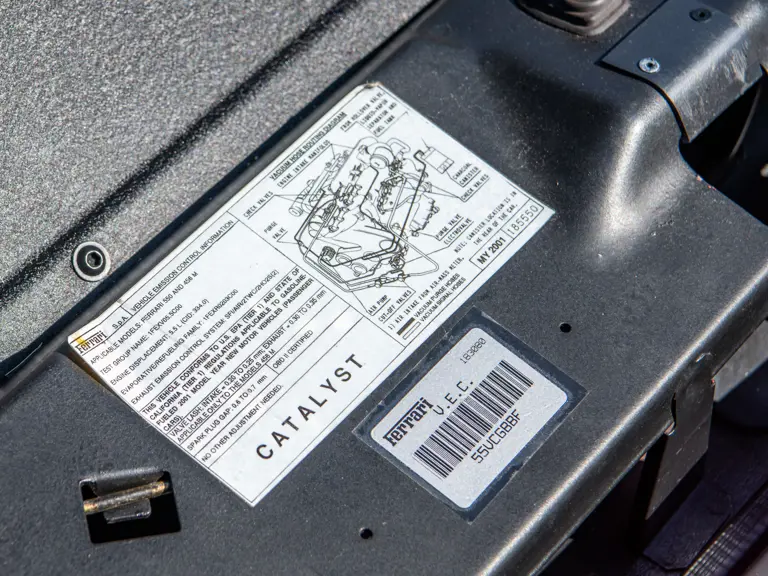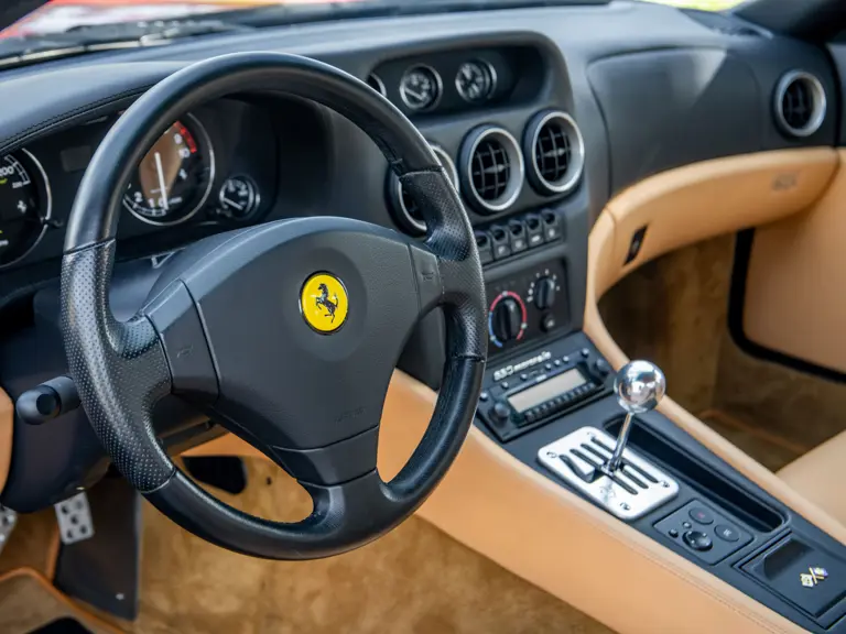 In recognition of this 550 Maranello’s quality and presentation, it received the Ferrari Club of America’s Platinum Award at the 2023 Pennsylvania Concorso Ferrari. It is presently fitted with a Tubi exhaust, though its original exhaust accompanies the sale, and it is further offered with its window sticker, 2019–2025 service invoices, manuals, two keys, three remotes, and tools.