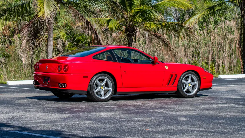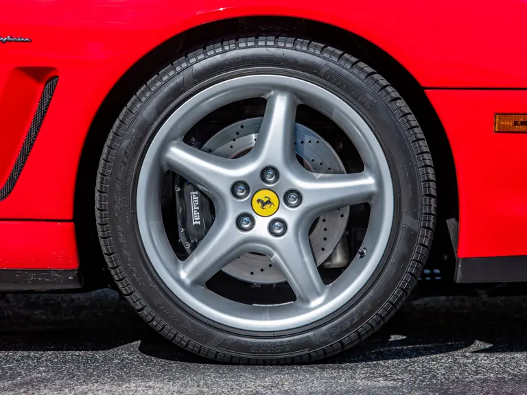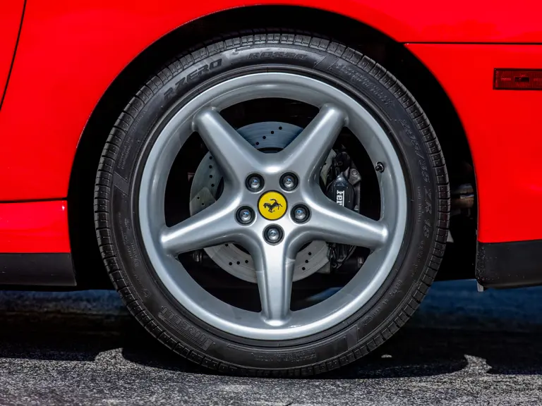 The 550 Maranello’s chassis featured electronically variable suspension, ventilated disc brakes at all four corners, and 18-inch five-spoke wheels. It soon became known for its performance potential, setting three production car speed records in 1998—covering 100 kilometers at an average speed of 304 km/h, 100 miles at an average speed of 190.2 mph, and driving one hour at an average speed of 184 mph—all of which would stand until 2002. The 550 would achieve 60 mph in just 4.3 seconds, 100 mph in 10.2 seconds, and 150 mph in 23.5 seconds on its way to a 199-mph top speed.