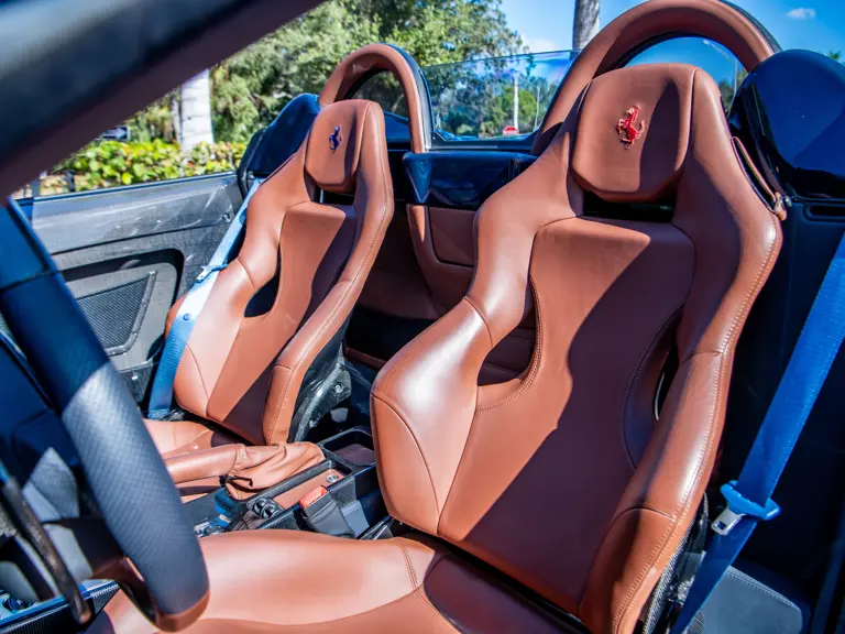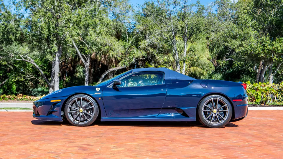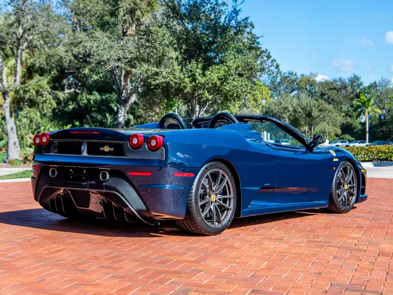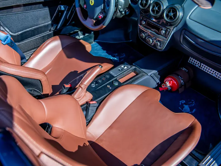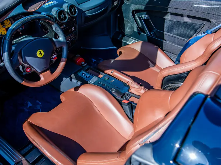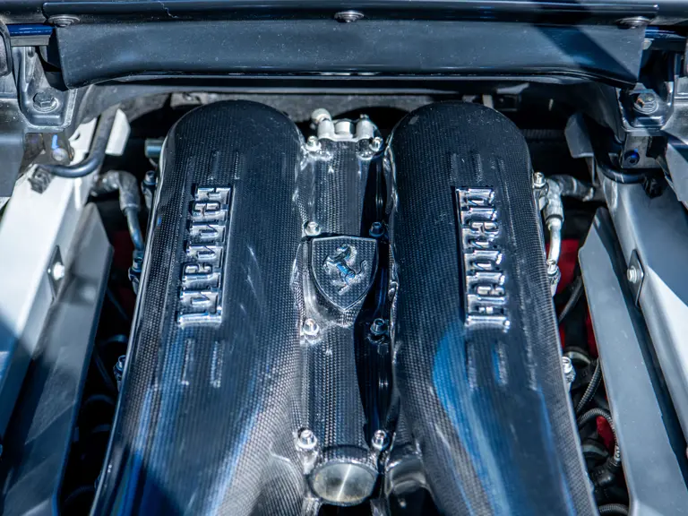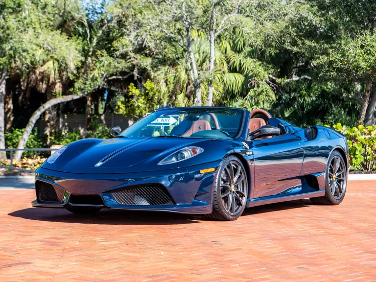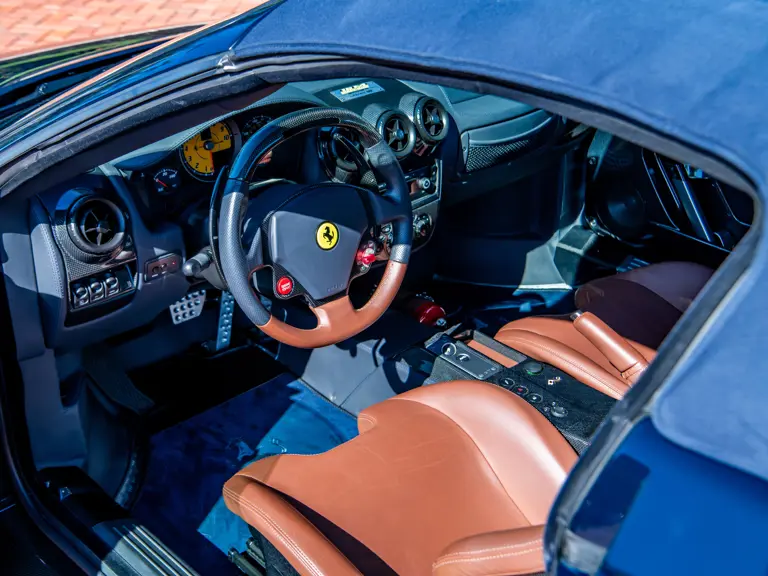 The Scuderia Spider 16M celebrated Maranello’s 16th Formula 1 Constructors’ Championship, an achievement unrivaled in motorsport. Built in a limited series of just 499 examples, the exclusively open-topped model was derived from the uncompromising F430 Scuderia, retaining its potent 4.3-litre V-8 while adding subtle refinements such as redesigned pistons and a higher compression ratio. The result was an engine that climbed to redline with thrilling immediacy, delivering torque and roar in equal measure. Rated by Ferrari at 503 horsepower sent through the acclaimed F1-SuperFast2 six-speed transmission, it also delivered scorching acceleration, sprinting from 0 to 60 mph in just 3.8 seconds on the way to a 198-mph top speed.