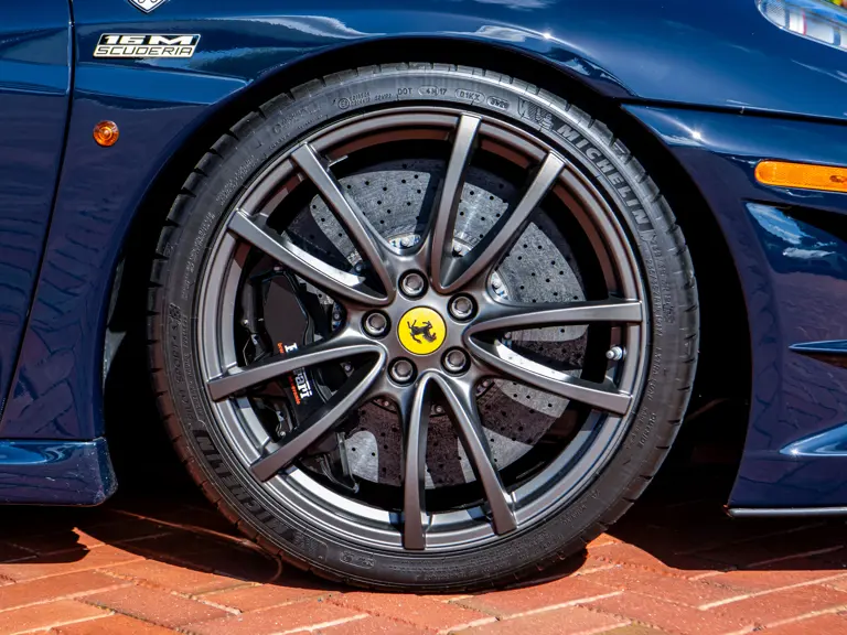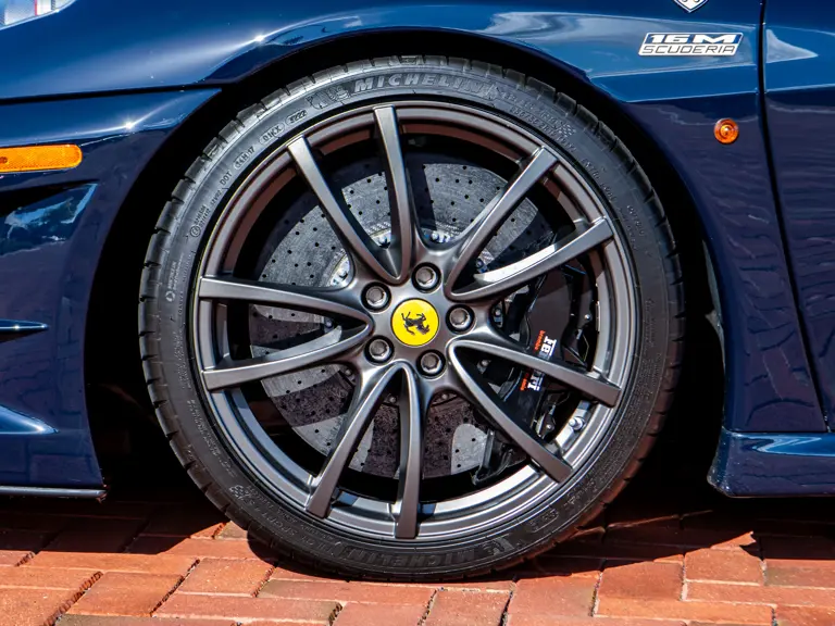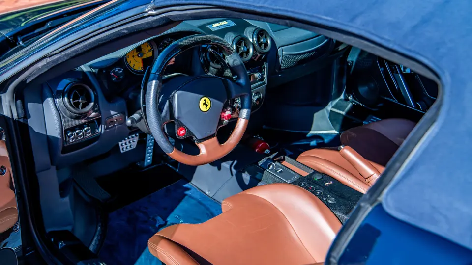 Despite the structural reinforcements required for its open-top design, the 16M remained astonishingly light, testament to Ferrari’s relentless pursuit of weight reduction. Engineers implemented a comprehensive diet, including lightened front and rear bumpers, reworked front suspension and steering, forged alloy wheels, a carbon fiber roll bar, and even titanium wheel bolts, with the result being a remarkable 176 pounds lost from the standard F430 Spider and preservation of the F430’s remarkable driving dynamics.