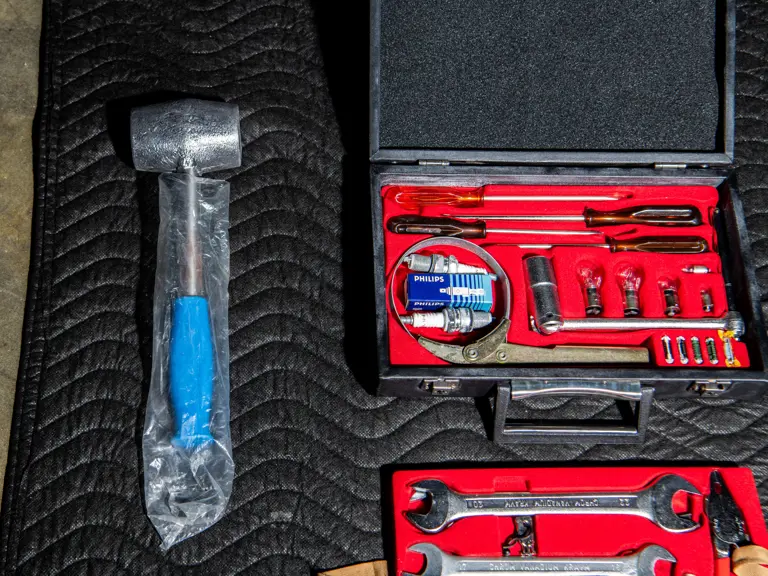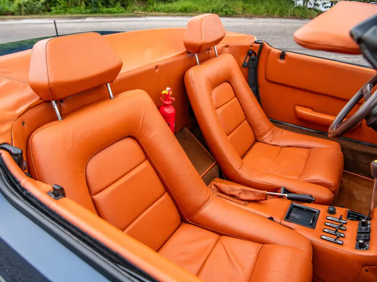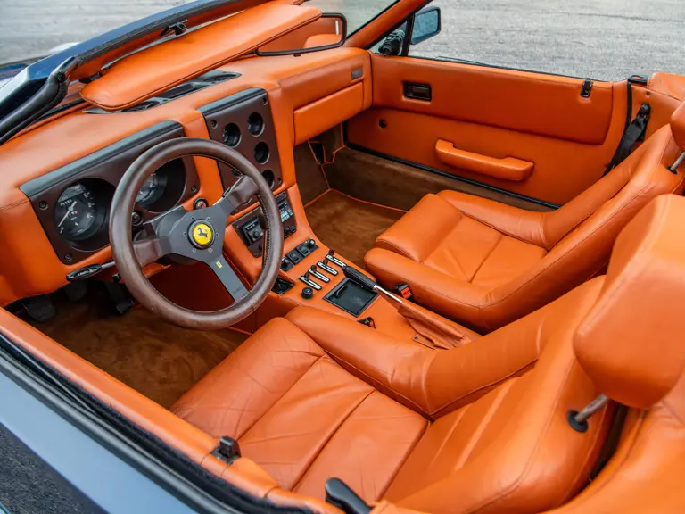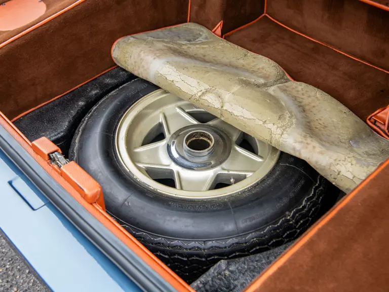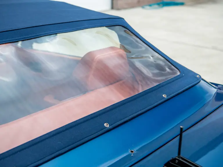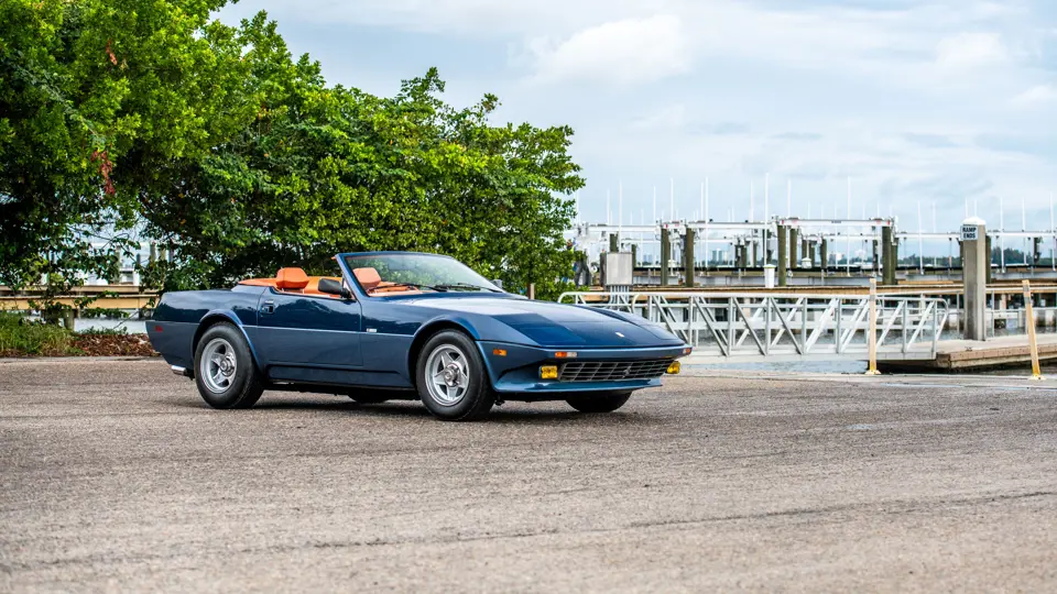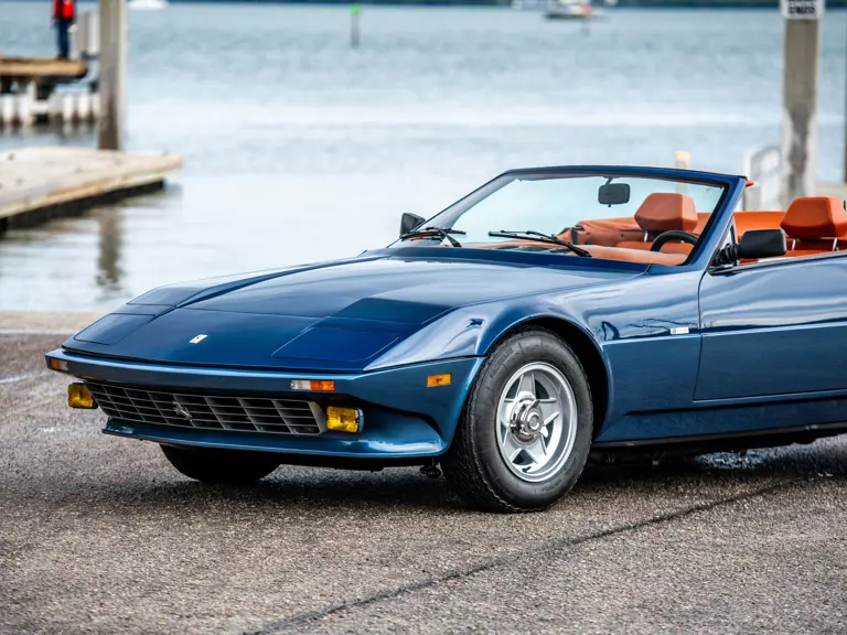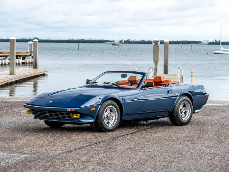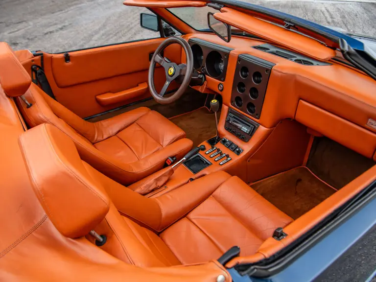 Chassis number 14299, the first of three Michelotti Spiders configured for Chinetti to roadgoing specifications, was based on a standard 365 GTB/4 coupe with air conditioning and power steering. It was originally delivered to a favored Chinetti client by the name of Dr. Silva. In the mid-1970s Chinetti took the car back on trade, and in 1976 sent it to Michelotti. It was finished in a unique two-tone livery of dark blue over gray, with an orange-hued leather interior incorporating the original Veglia Borletti gauges, five-spoke alloy wheels, tan soft top, and body-color removable hardtop.
