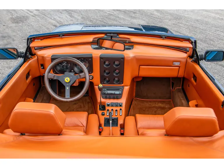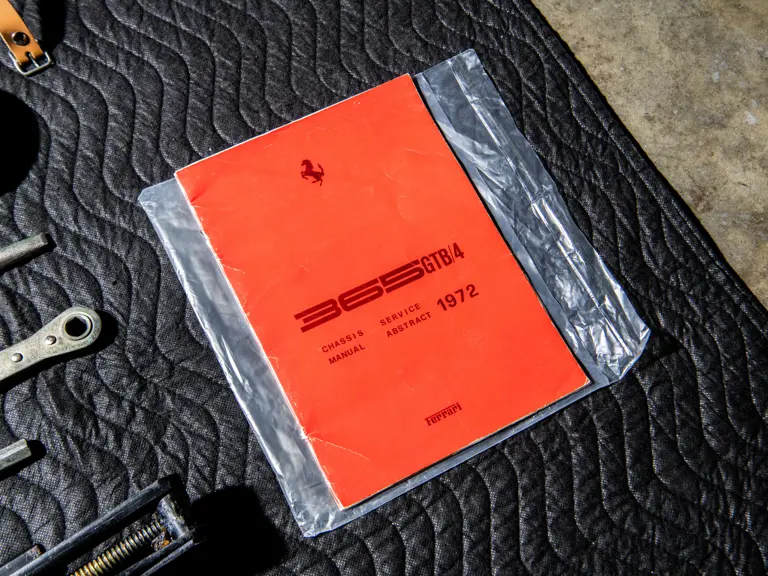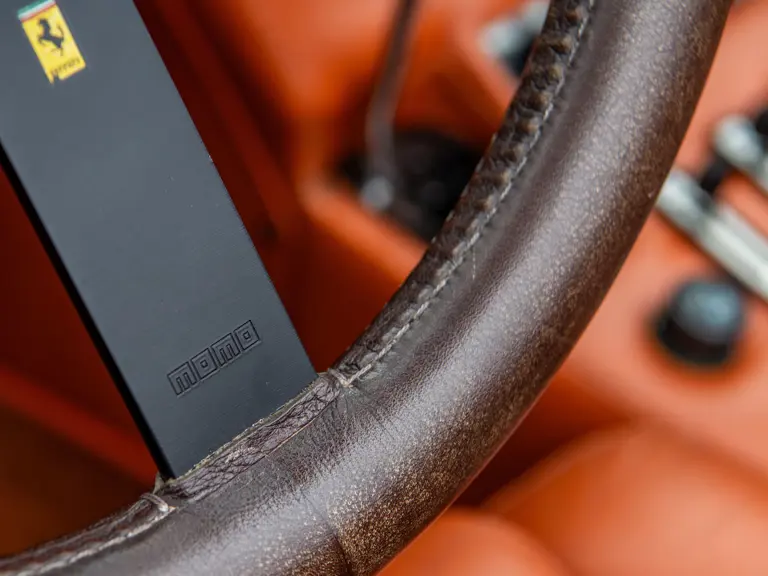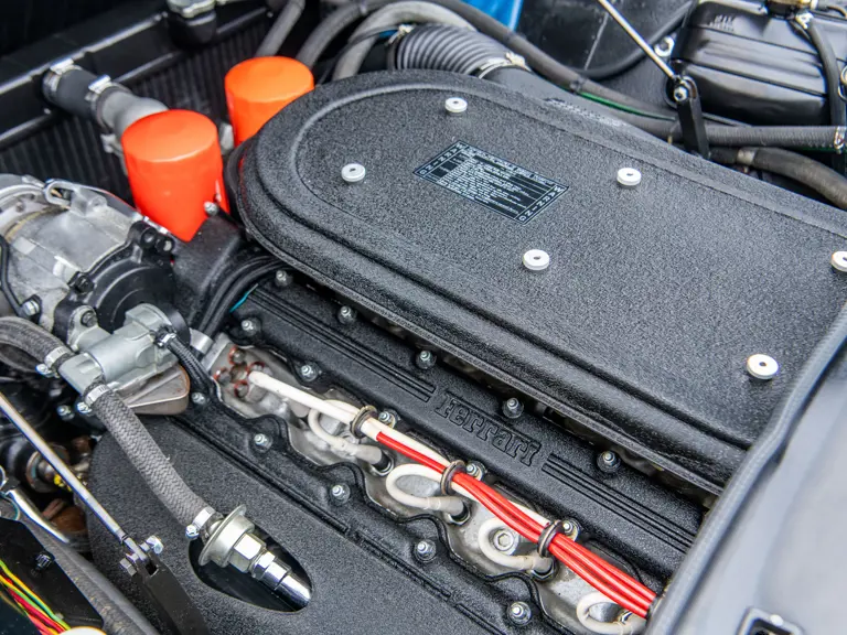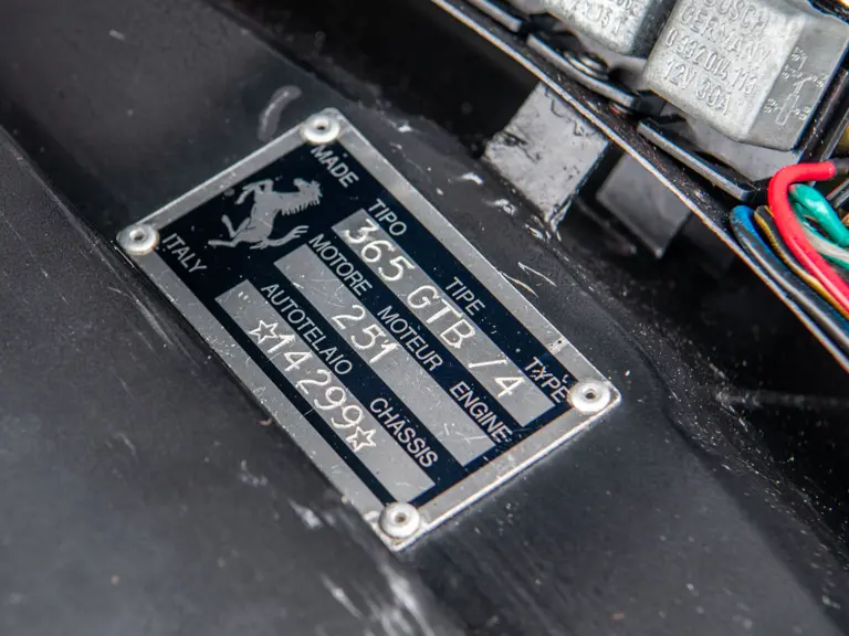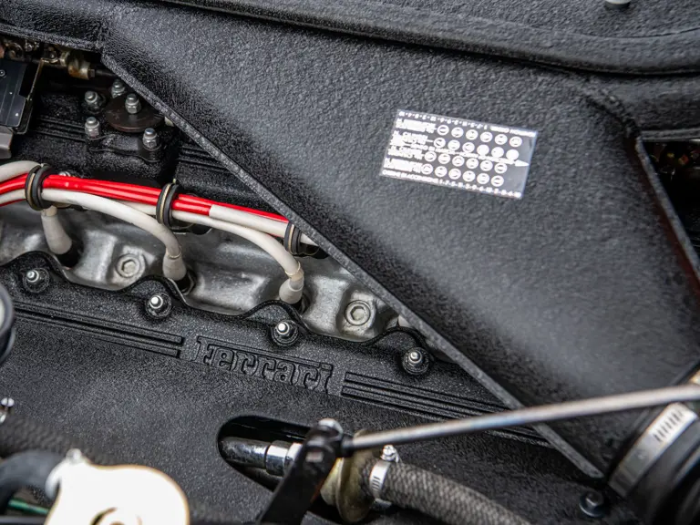 By the time that the Spider returned stateside in 1985, Mrs. Chinetti had passed away, and so her husband chose to sell her car. It was acquired by Los Angeles-based dealer Marty Yacobian, who presented it at the Palm Springs Concours d’Elegance in 1986. Yacobian sold the Ferrari in 1990 to a dealer in Florida, from whom it passed to Marv Tonkin, brother of the well-known Ron Tonkin, and finally in 1991 to acclaimed Ferrari collector Jon Shirley. Among the best-known tifosi for decades, Mr. Shirley is well-known for his renowned stable, which for some years included virtually all the great Ferrari models, including the first Ferrari to win Best of Show at the Pebble Beach Concours d’Elegance. The “Marion Spider” remained part of his collection for 22 years, and late in his ownership was certified by Ferrari Classiche with an Attestation of Historical Interest, an honor bestowed upon cars deemed to possess important competition or show history subsequent to when they were first sold by Ferrari. The same document confirms that the car regains its original 365 GTB/4 chassis and engine, while the gearbox is a replacement stamped by Classiche.