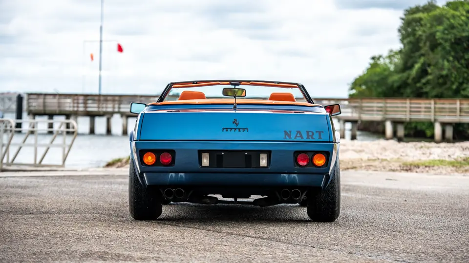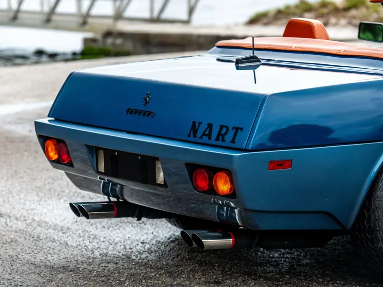 By the mid-1970s, the worldwide trend in sports car design had evolved from the curvaceous and flowing shapes of post-war air tunnels to the air-splitting power of aggressive, crisp geometric shapes—what would famously become known as the “wedge” era. Always at the leading edge, Ferrari itself began evolving wedge-shaped designs, while in the United States, Luigi Chinetti, the US importer and North American Racing Team (NART) principal, commissioned his own iterations. In the mid-1970s Chinetti ordered no fewer than five 365 GTB/4 Daytonas to be rebodied by Giovanni Michelotti—each individually built with myriad distinguishing details, but sharing an angular, blade-like shark-nose motif, with a single unwavering beltline from nose to tail. They were, in many senses, the most aggressive Daytonas ever built.