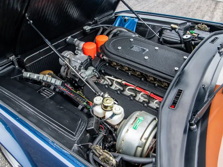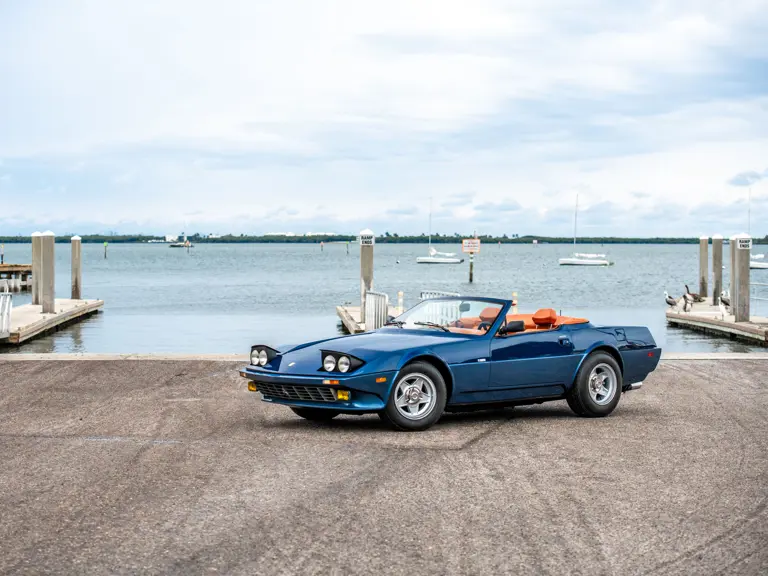 A unique glimpse of Michelotti’s interpretation of the famed Daytona and a vision of, literally, the future of Italian design, the “Marion Spider” is steeped in the provenance of the famed Luigi Chinetti and the revered Jon Shirley. With only about 6,000 miles recorded since its 1976 completion, it is sure to draw attention at future events and concours, where its sublime styling will be the head-turner it was at Turin and Le Mans.