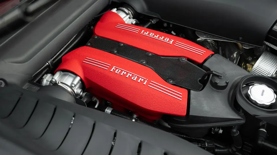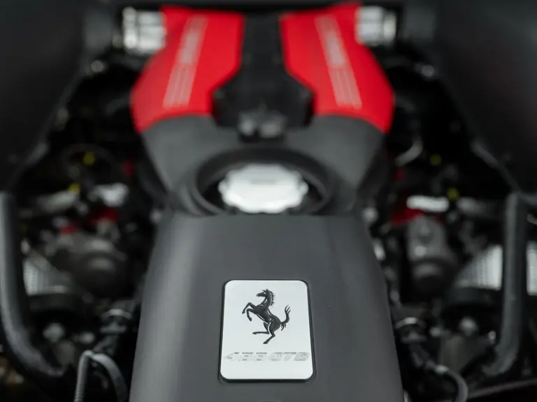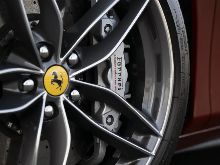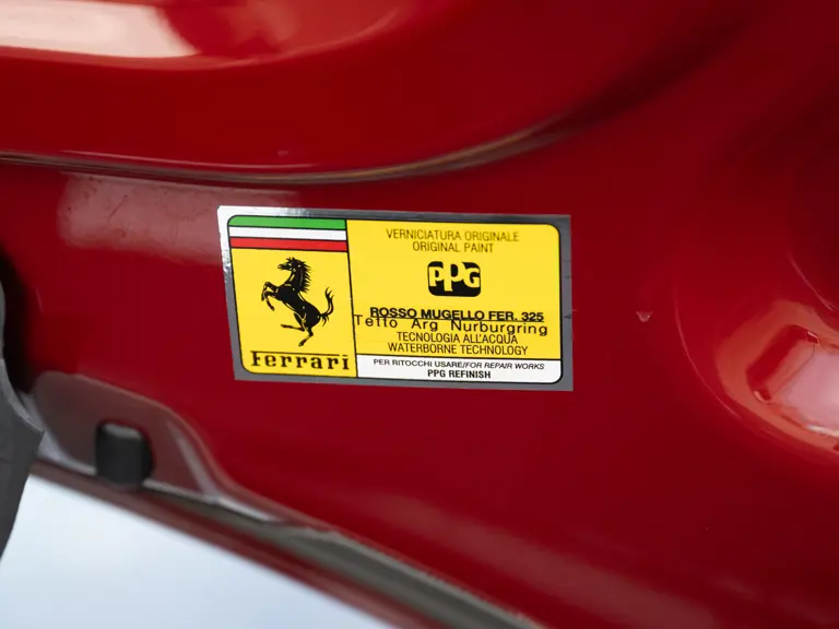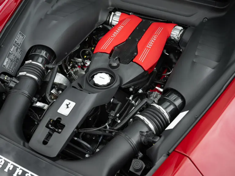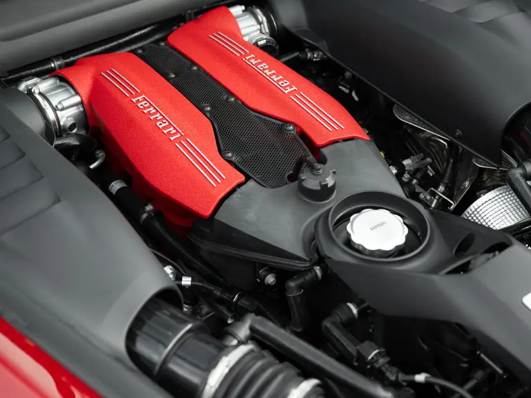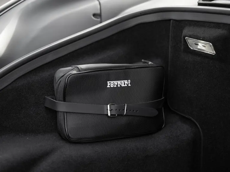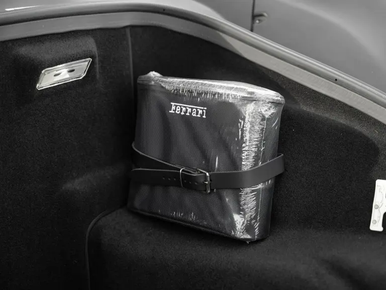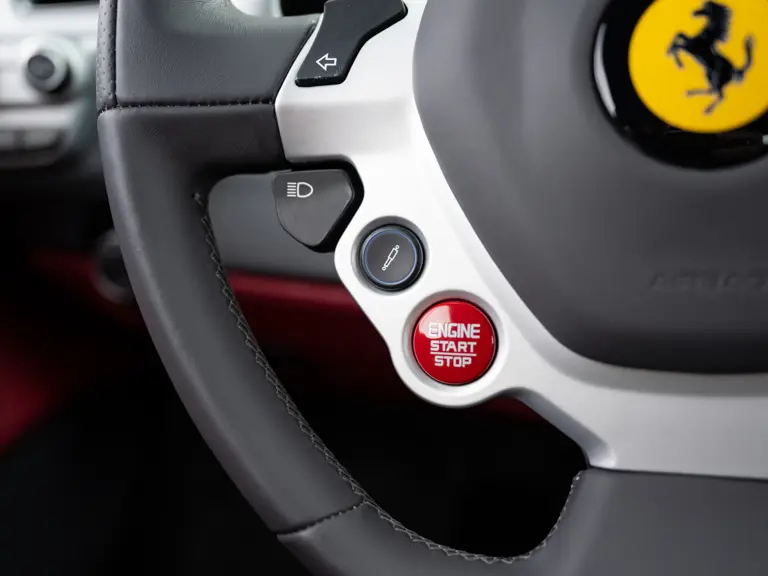 The distinctive color scheme on this one-of-one 2018 Ferrari 488 GTB 70th Anniversary takes inspiration from the landmark 1959 Ferrari 250 GT Pinin Farina Coupe’s signature livery of Rosso Bordeaux with Grigio Conchiglia roof. It is the 26th color combination in the commemorative series and is named “Some Like it Red” after the Marilyn Monroe 1959 film Some Like it Hot. Ferrari Tailor Made reinterpreted this timeless color scheme for 70th Anniversary models with an exterior color combination of Rosso Mugello and contrasting Argento Nürburgring roof and mirror caps, as seen on the 488 GTB offered here. Various exterior ducts, grilles, and flaps were finished in Matte Black as part of the 70th-anniversary treatment. Meanwhile, the two-tone interior combines Charcoal elements with deep plum Vinaccia leather upholstery on the doors and seats, which feature a vertical ribbed pattern typical of classic GT cars. Tone-on-tone stitching, embroidered logos on the headrests, aluminum elements in Argento Nürburgring, and a 70th-anniversary dedication plate further dress the cabin.