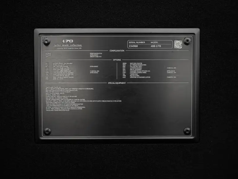Acquired by the consignor in 2025, this one-of-one 488 GTB 70th Anniversary is now offered with 4,500 miles showing on the odometer at cataloguing time and is accompanied by a window sticker, factory books, and 70th Anniversary Grey Book. For the Ferrari enthusiast set on owning one of the company’s iconic mid-engine V-8 supercars finished in classic red, this unique 488 GTB presents a wonderful opportunity to acquire a truly singular example that is sure to stand out from the rest.
