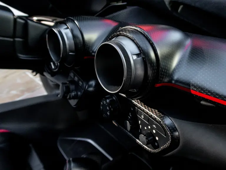 Ferrari’s in-house designer Flavio Manzoni penned the coachwork, which is beautifully low-slung and sleek while eschewing the brutal and somewhat controversial styling of the Enzo. In order to control all the power on tap, the body was adorned with a host of electronically deployed active aerodynamic elements, including smart front and rear undercarriage panels, and a rear spoiler. These manage to continuously attenuate downforce from between 200 and 800 pounds. Mammoth cross-drilled and vented Brembo carbon ceramic disc brakes and proprietary Pirelli P-Zero Corsa tires complete the technical profile, keeping the LaFerrari grounded as possible through screaming switchbacks.