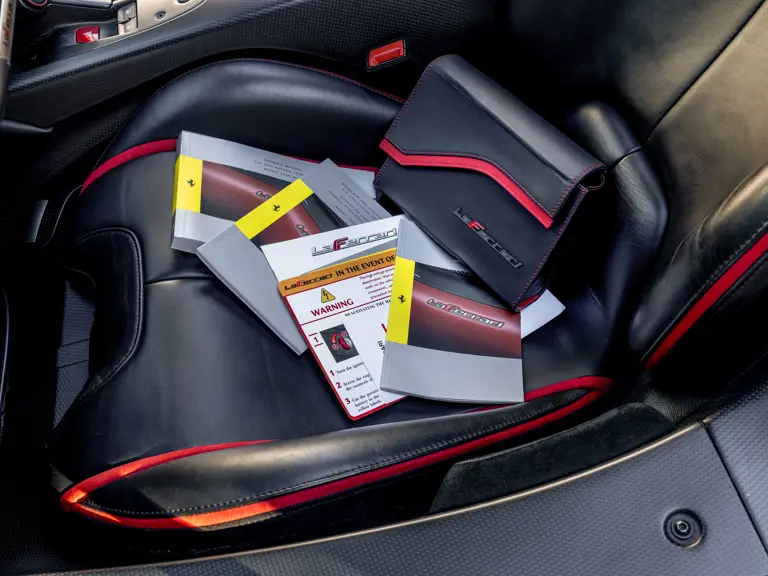 It is worth noting that in late 2019 the consignor transferred official ownership of the LaFerrari to his LLC, and as a result documentation cites three separate owners. Despite this bureaucratic distinction, the Ferrari has remained the consignor’s personal car for all intents and purposes, and it should definitely be considered a two-owner car.