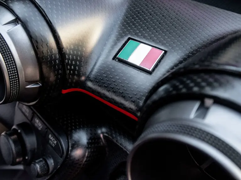 Purchased in mid-2018 by the consignor, an enthusiast based in Northern California, the LaFerrari continued to enjoy the expert attention of marque dealerships, with annual service conducted by Ferrari of Silicon Valley. The owner enjoyed 211999 as a display piece as much as anything, never driving the car on a track or in any competitive setting, and lovingly displaying it in his living room. Per his personal preference, the owner submitted the car to Ferrari of Beverly Hills for the application of the current Italian tri-color nose emblem and hood pinstriping, based on the styling of the marque’s open spiders. This aesthetic enhancement was conducted with adhesive, not paint, and therefore can be easily removed if the future caretaker prefers a stock appearance.