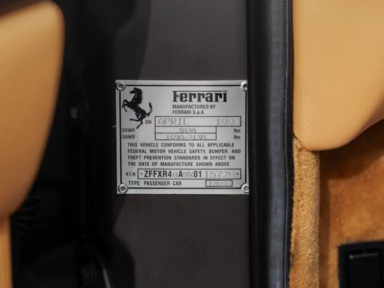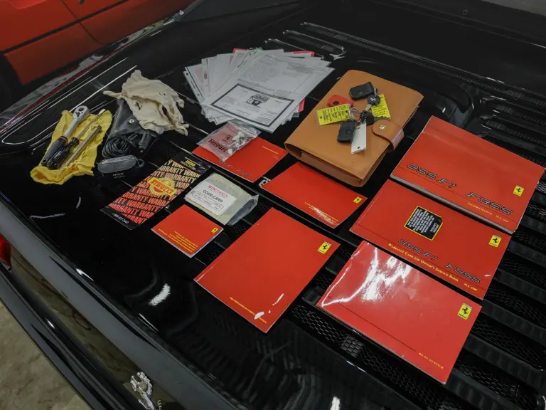 The F355 Spider presented here is a true prize for marque connoisseurs: A factory gated-manual example with just 2,726 miles at cataloguing and a freshly completed engine-out service. Finished in black over beige Connolly leather, the car is exceptionally well-documented, with copies of its original window sticker, certificate of origin, purchase documents, and warranty card documenting its initial delivery through Ferrari of Atlanta on 18 May 1999 to an enthusiast from Franklin, Tennessee.