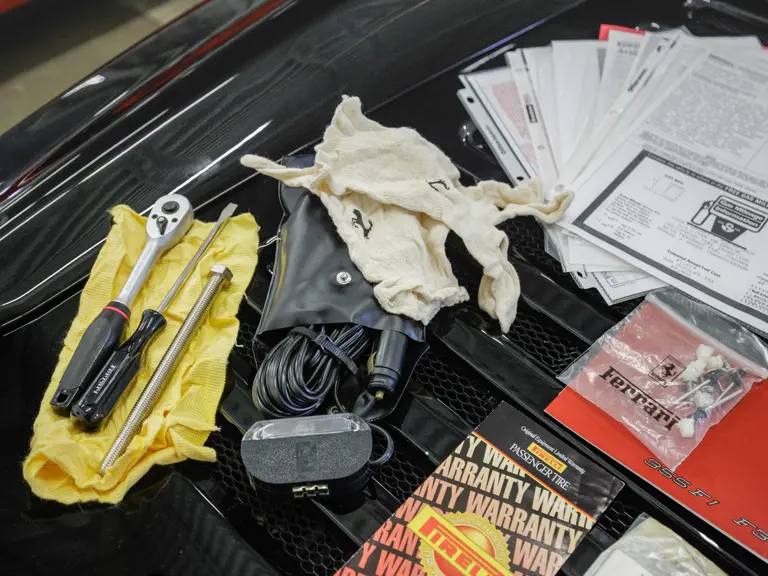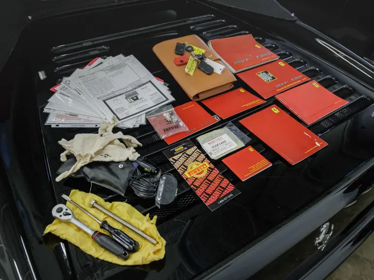 - Accompanied by its original window sticker, certificate of origin, and purchase documents as well as its original owner’s manuals with service booklet and leather pouch, factory tool kit with tire inflator, car cover, tan leather top boot with protective bag, and three factory key fobs