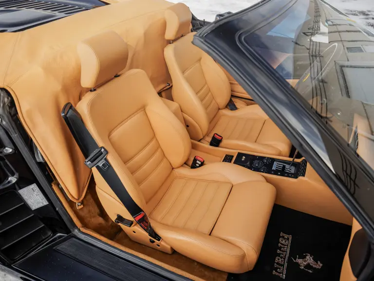 Having enjoyed a careful life of sparing use, the Spider most recently received an extensive engine-out service in November 2025 at North Coast Exotics in Cleveland, Ohio which included new timing belts, tensioner pulleys, spark plugs, fluids, and filters. Alongside its original sales documents, the car is accompanied by its original owner’s manuals with service booklet and leather pouch, factory tool kit with tire inflator, car cover, tan leather top boot with protective bag, and three factory key fobs.
