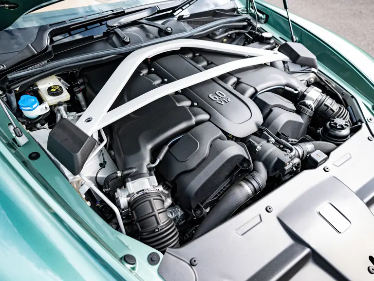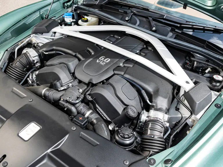 - Powered by Aston Martin’s venerable 5.9-litre, naturally aspirated V-12 rated at 592 brake horsepower