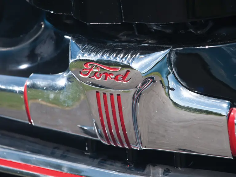In a world of modern concours restorations, it is sometimes difficult to recall what factory original cars looked like. This Super DeLuxe Business Coupe offers the opportunity to sit behind the wheel of a vintage Ford and experience many original features along with the driving experience. The interior sports correct mohair seat covers and door panels, along with gauges and correct instrumentation. The engine bay is similar in many ways, having retained vintage style plug wires and several other unchanged components. The block has been painted but not overly detailed. The underside has been paint-detailed, resulting in excellent preservation but little alteration from the original-type finish. Overall, this is a truly honest, largely unaltered example, down to the original owner’s manual with handwritten notes still found in the glove box. It is refreshing to experience a survivor and this Ford offers that opportunity.