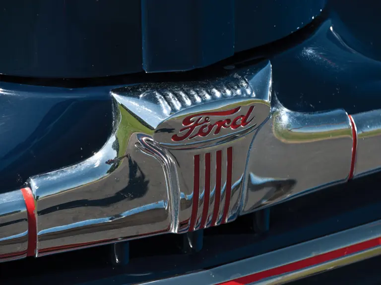 While his stint at Ford may seem brief, Eugene “Bob” Gregorie was largely responsible for the practical but modern lines of the Ford from 1935 to 1948, and several of these models are highly regarded today. Gregorie’s efforts can be seen in this brilliant 1946 Ford sedan. Purchased by the prior owner in 1997 and fully restored in 2004, this stunning Super DeLuxe is accompanied by photo-documentation of the process. The paint, body, and external trim remain excellent overall, and the underside shows nearly no wear. Accessories such as a clock, factory radio, dual visors, and an under-dash heater complete the well finished and correct interior. Also included are a title from 1957 and documentation of the engine rebuild. Bob Gregorie likely never imagined the appreciation that his designs would garner, but here is a testament to that earned respect and pursuit of perfection.
