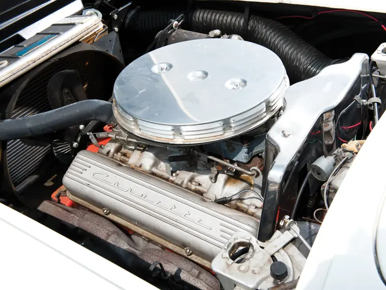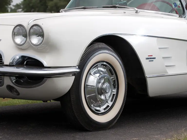 While one-third of the 10,939 Corvettes produced for 1961 were finished in Ermine White, only about 10 percent received the very desirable dual-quad 245 horsepower engine with a four-speed transmission. This numbers-matching convertible also includes both the hardtop and white soft top. It appears to have been restored many years ago, and today, it remains in presentable order, showing some signs of road use. The interior has been restored nicely and remains well appointed, down to the proper carpets. Like the engine compartment, the chassis and frame areas show signs of an older restoration that has been driven and enjoyed on the road. Overall, this is a very suitable driver level example that can be enjoyed right away.