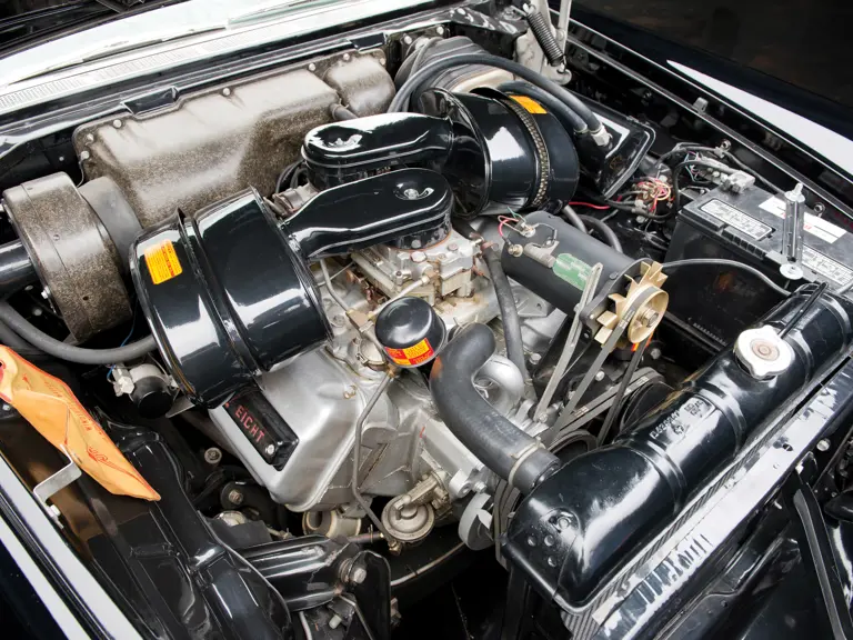 At the time of the restoration, the engine, transmission, brakes, and front end were fully rebuilt. Since then, it has accrued only 1,100 miles, which has allowed for the outstanding level of preservation. The engine bay presents very nicely, with correct components and an excellent finish on such items as the inner fender wells, the air cleaners, and the radiator tank.