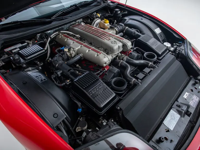 Significantly, in 2011, Ferrari Maserati of Ontario performed a belt service, including replacement of the timing belt and bearings; the odometer indicated 2,523 kilometers. Further service and an oil change followed in 2013, and in 2022 the shock actuators were rebuilt, and the notorious “sticky buttons” were corrected. Today it remains in excellent overall condition, with the engine compartment and undercarriage both remaining extremely clean, the upholstery still in nearly unmarked order, and the finish exhibiting only a few small paint chips to the front air dam.