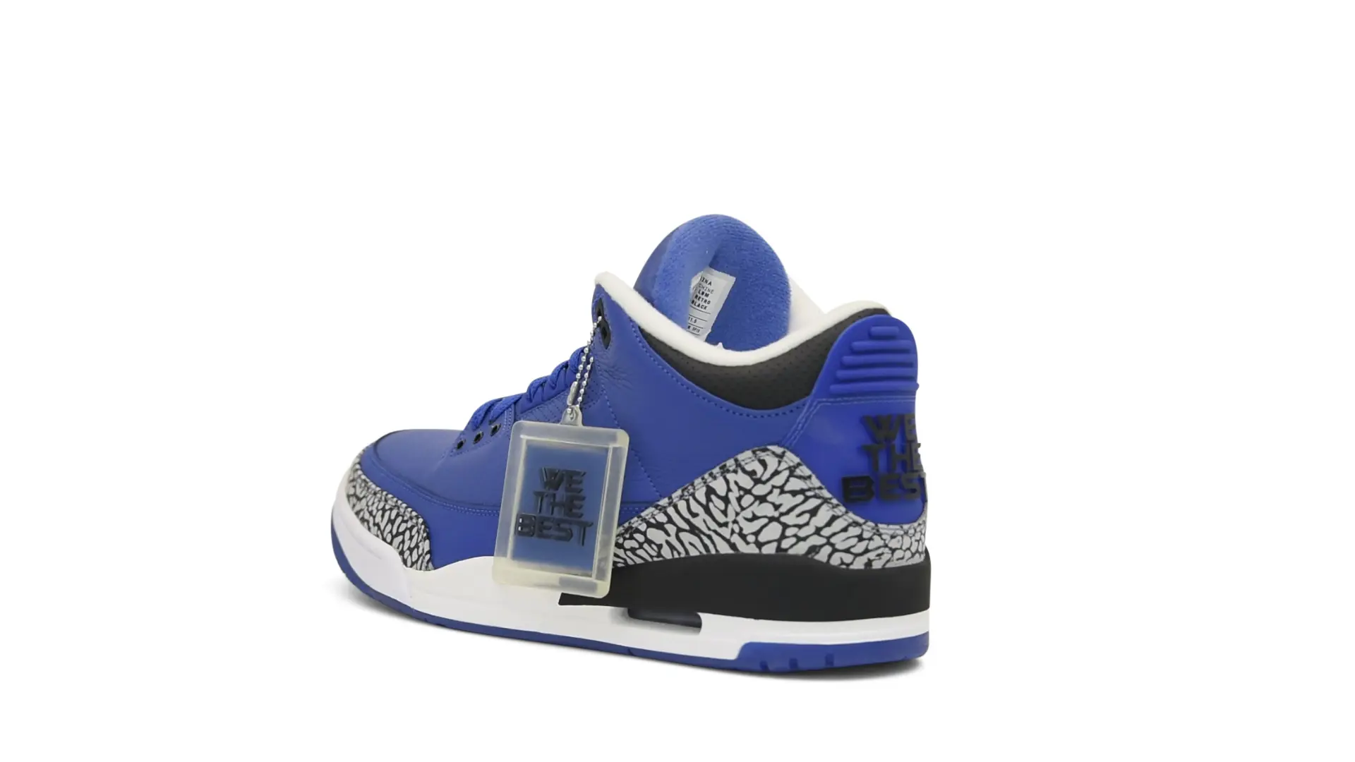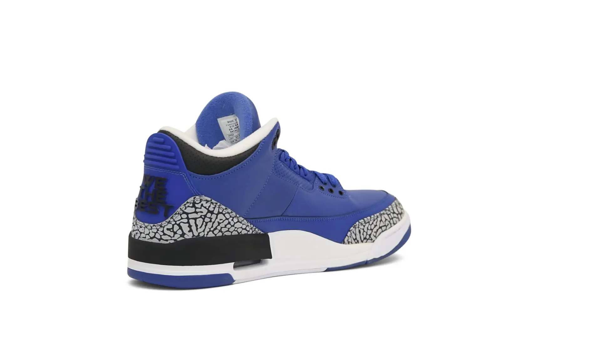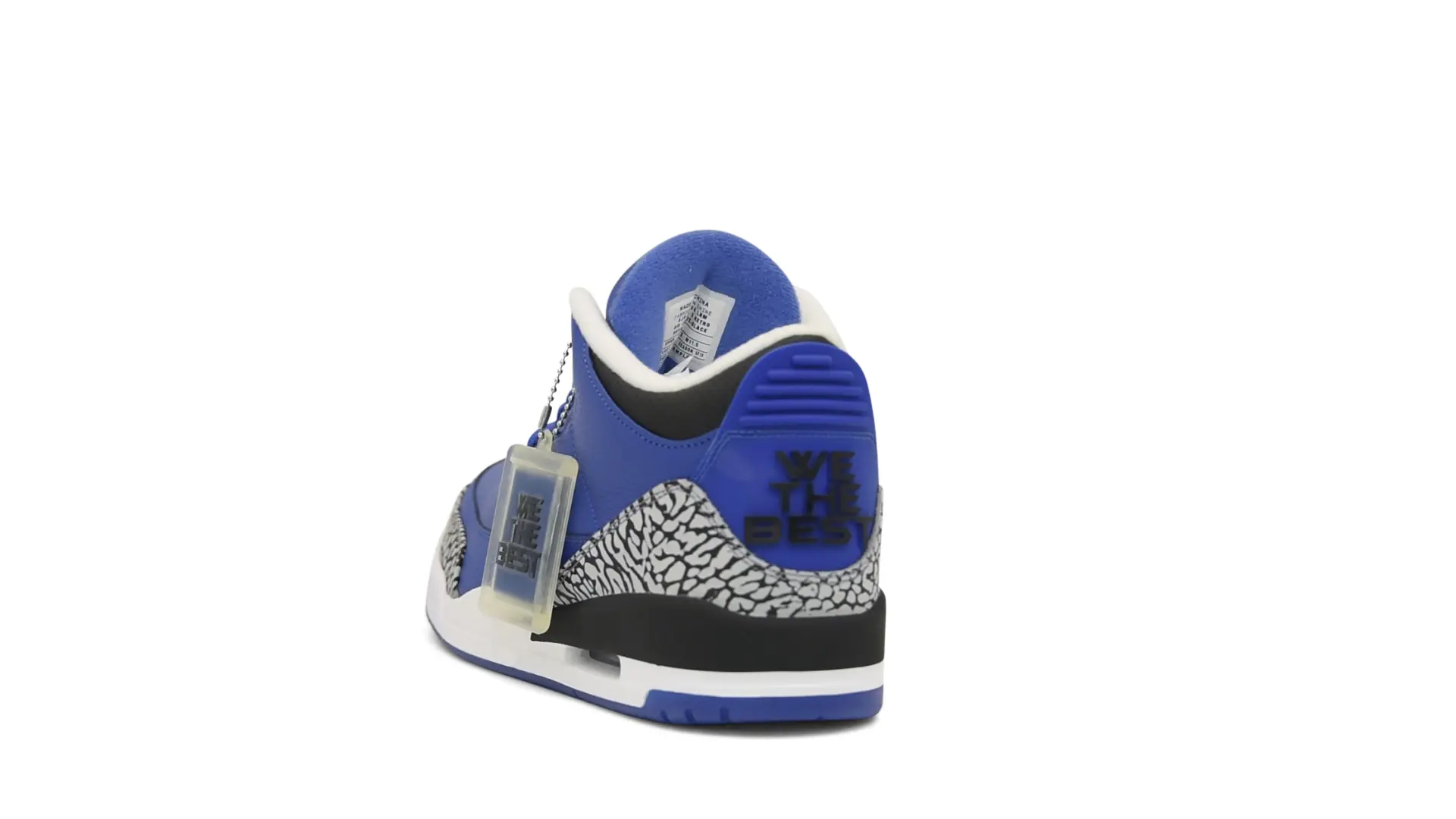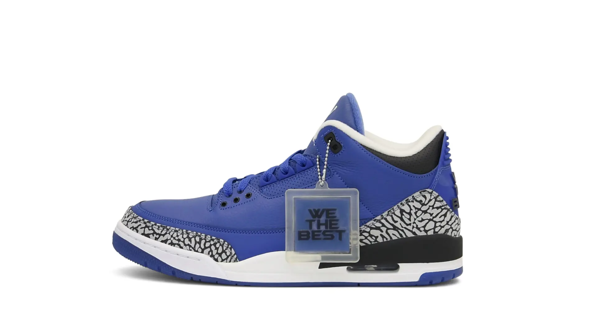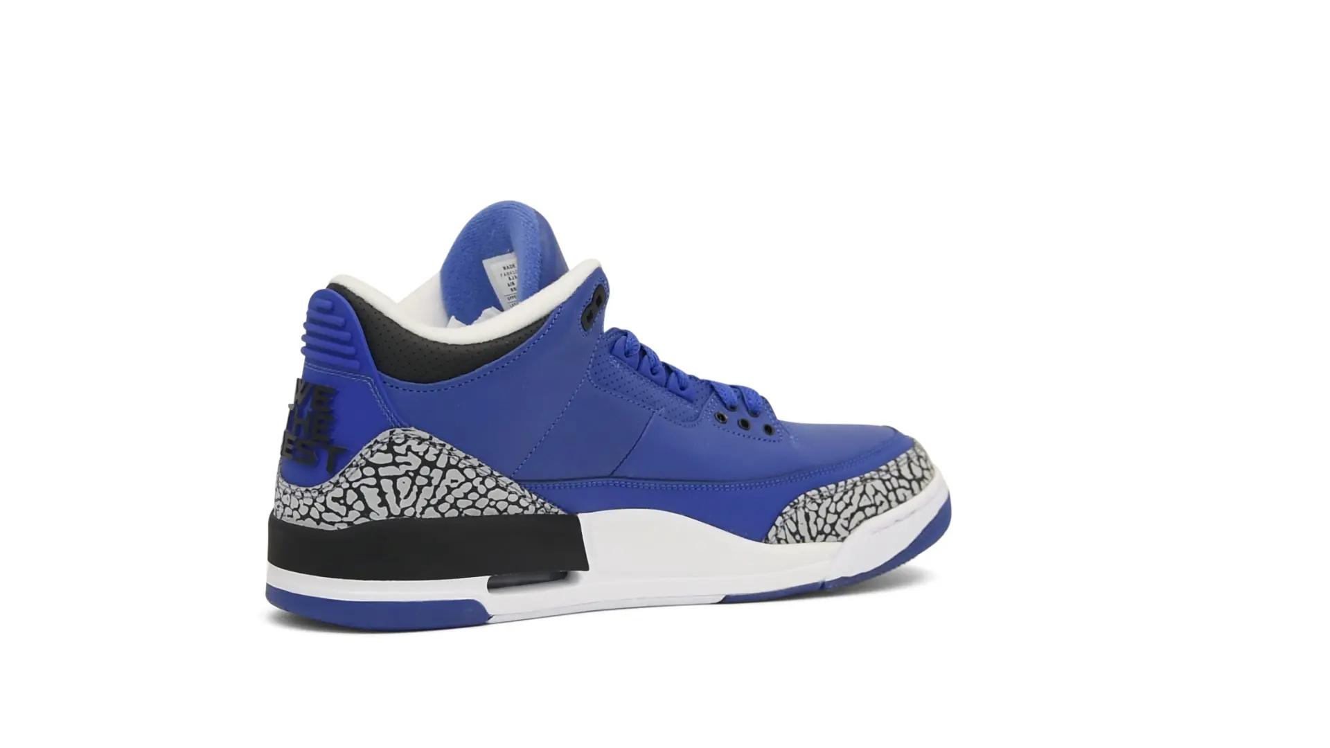 The “Another One” features a grain leather upper in Royal Blue, with overlays of grey elephant print and accents of black and white. Completed with a “We The Best” heel tab and hang tag, the Nike Air Jordan 3 Retro DJ Khaled Another One never saw a wider public release, and the samples were given to friends & family, making them incredibly rare.