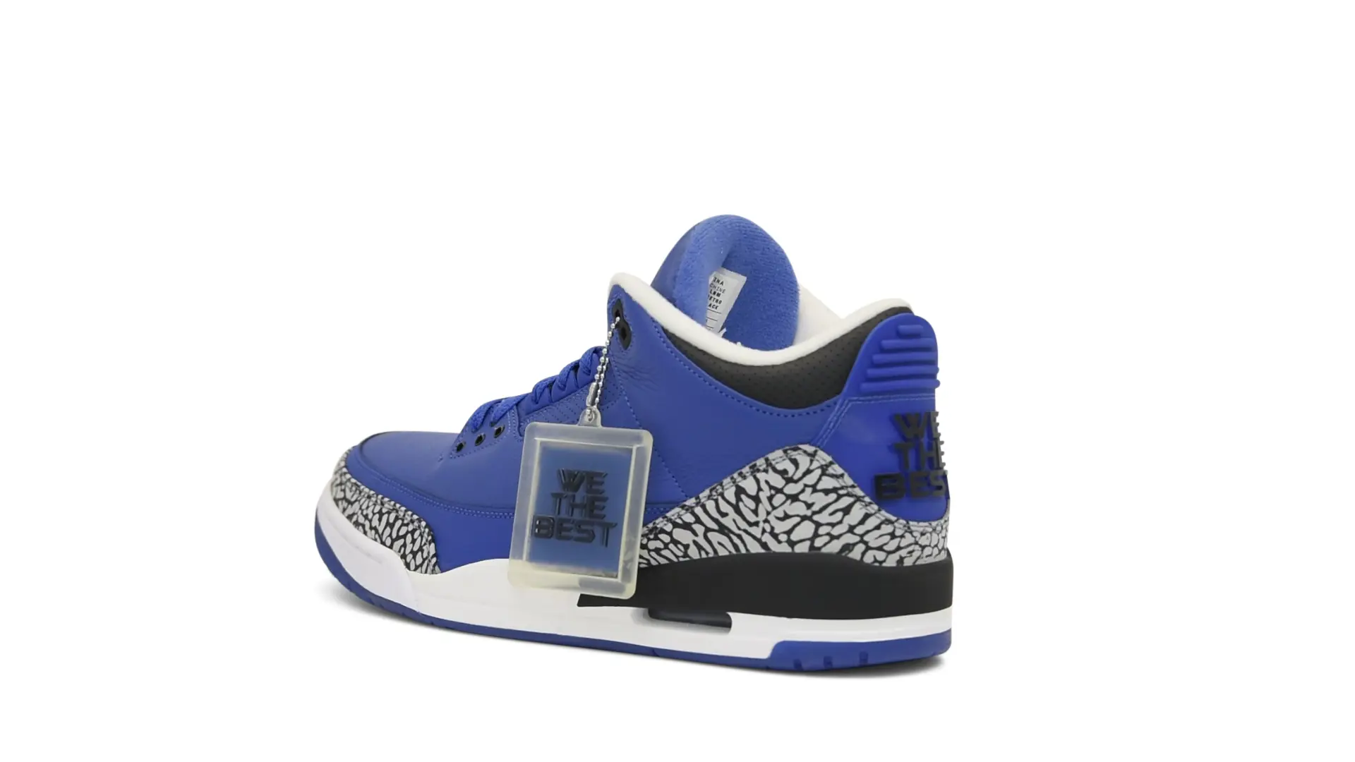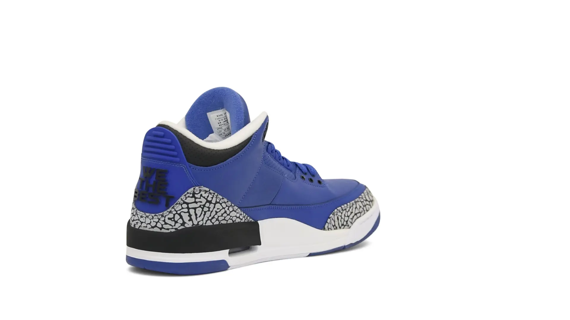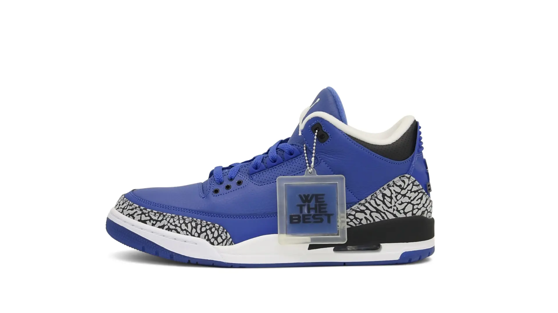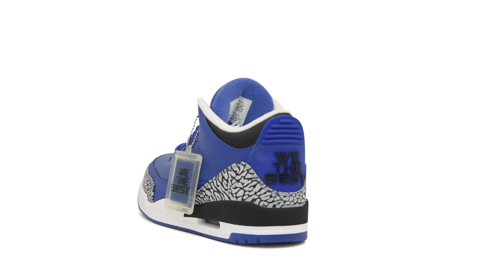 The “Another One” features a grain leather upper in Royal Blue, with overlays of grey elephant print and accents of black and white. Completed with a “We The Best” heel tab and hang tag, the Nike Air Jordan 3 Retro DJ Khaled Another One never saw a wider public release, and the samples were given to friends & family, making them incredibly rare.