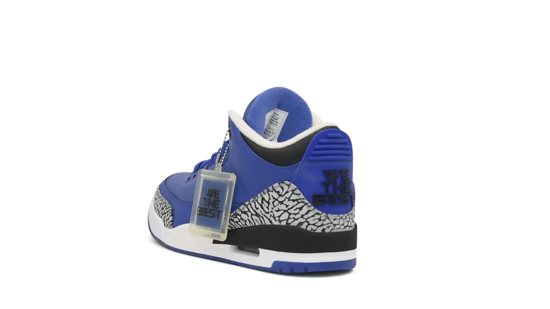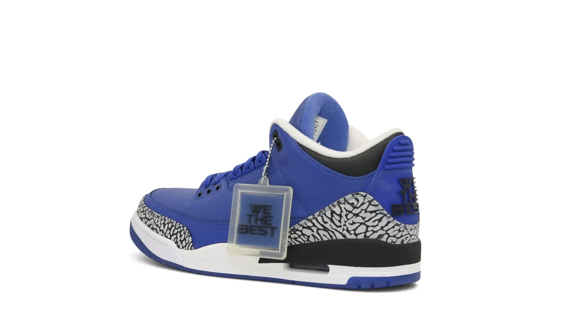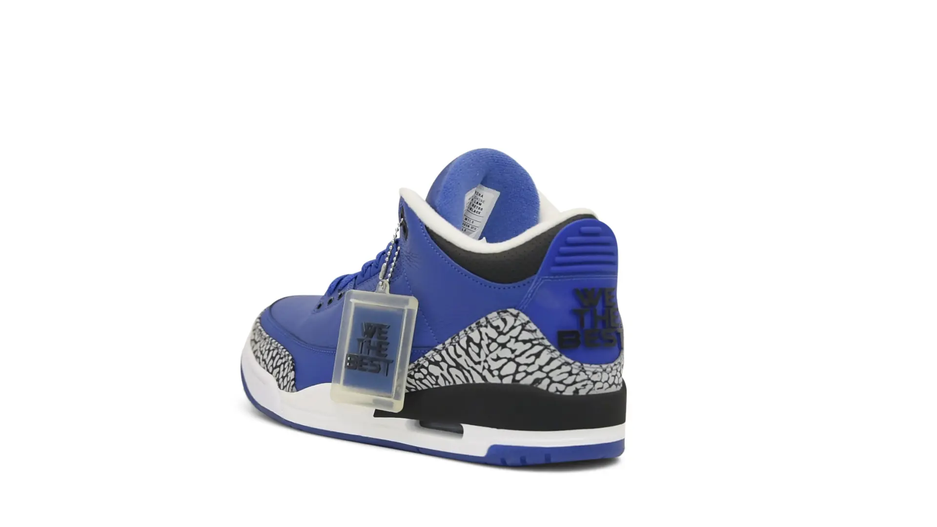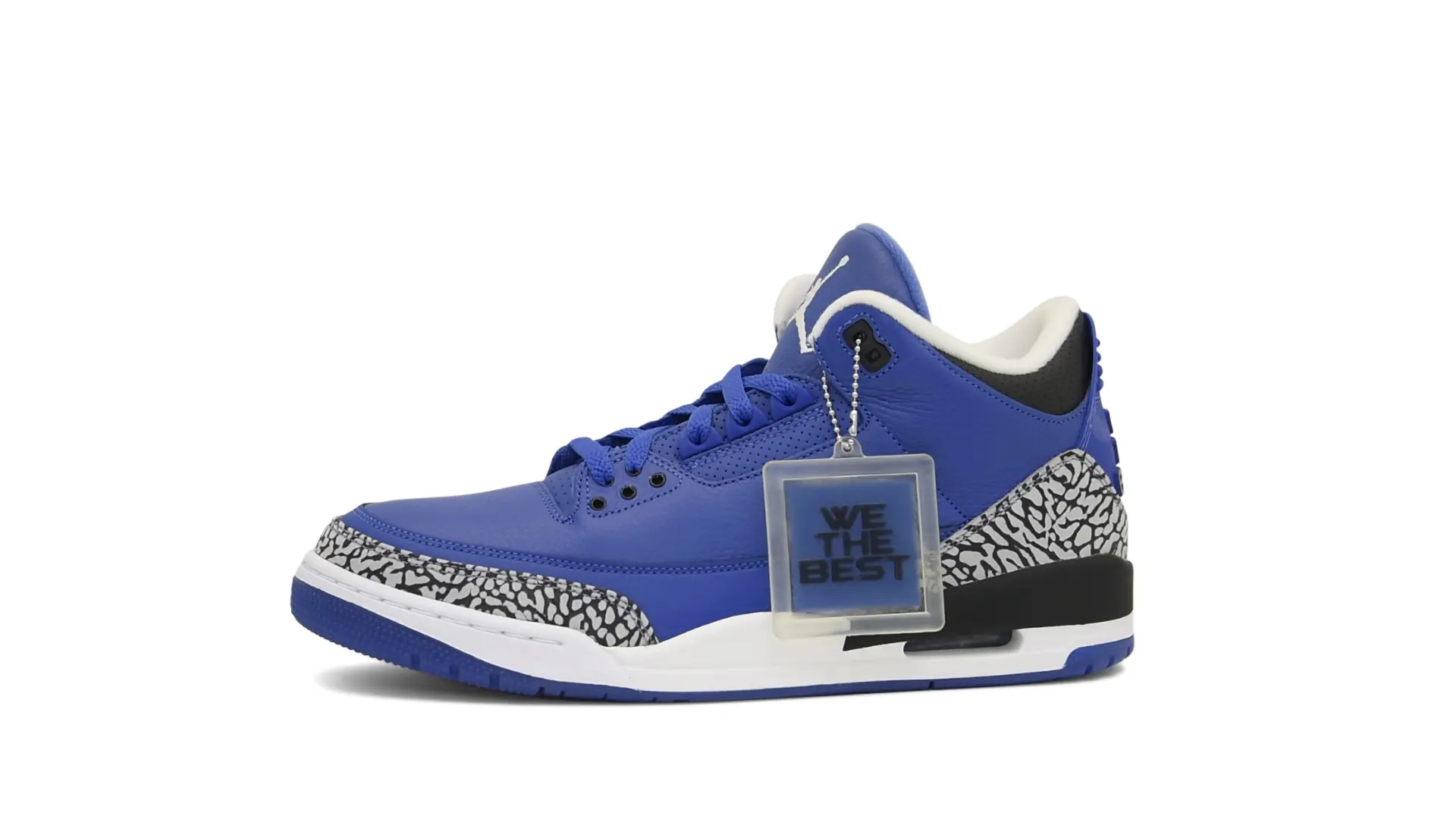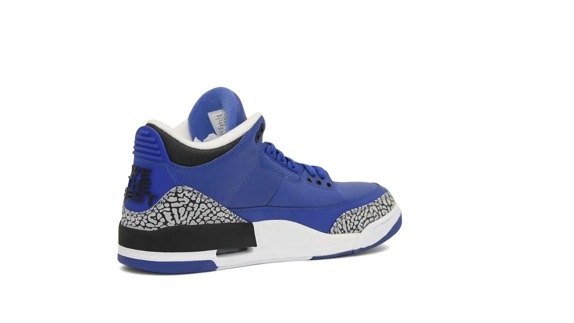 The “Another One” features a grain leather upper in Royal Blue, with overlays of grey elephant print and accents of black and white. Completed with a “We The Best” heel tab and hang tag, the Nike Air Jordan 3 Retro DJ Khaled Another One never saw a wider public release, and the samples were given to friends & family, making them incredibly rare.