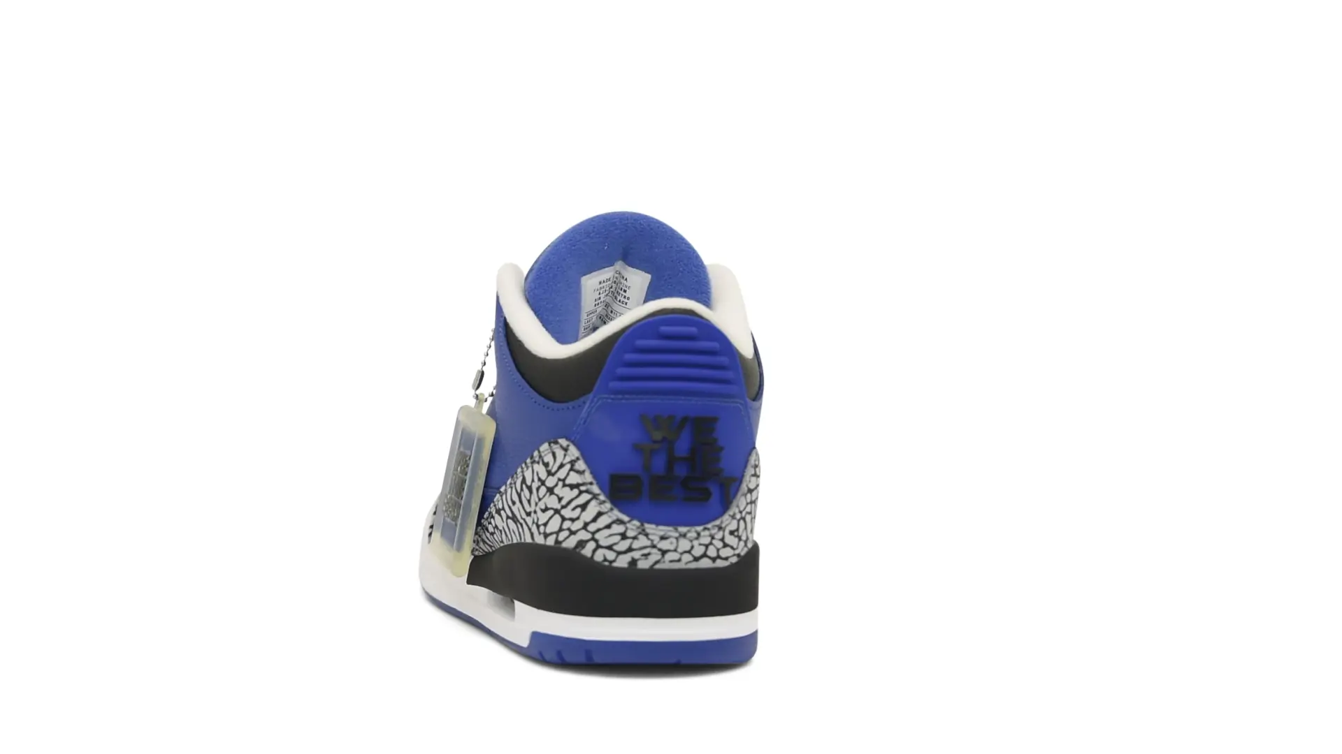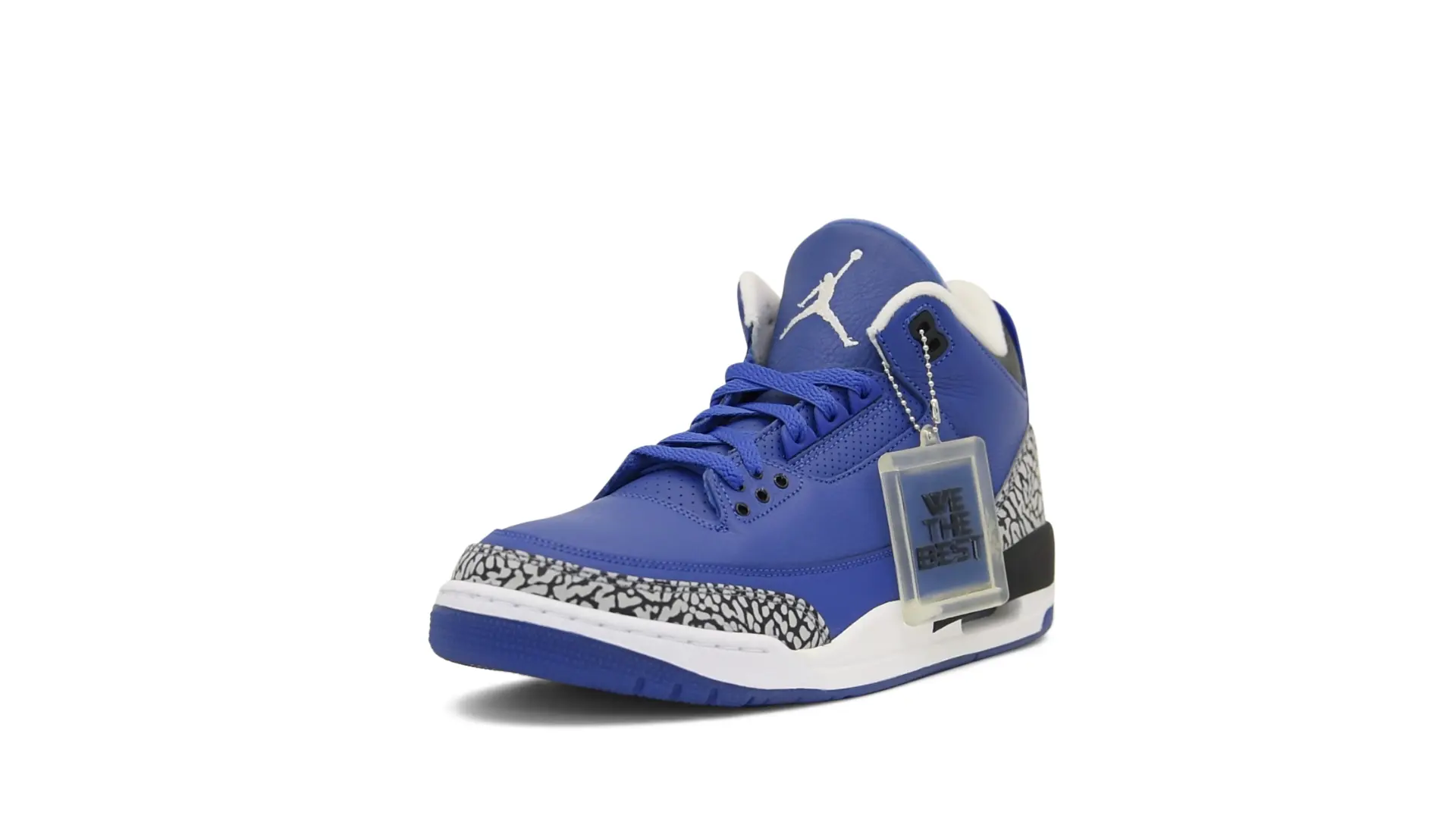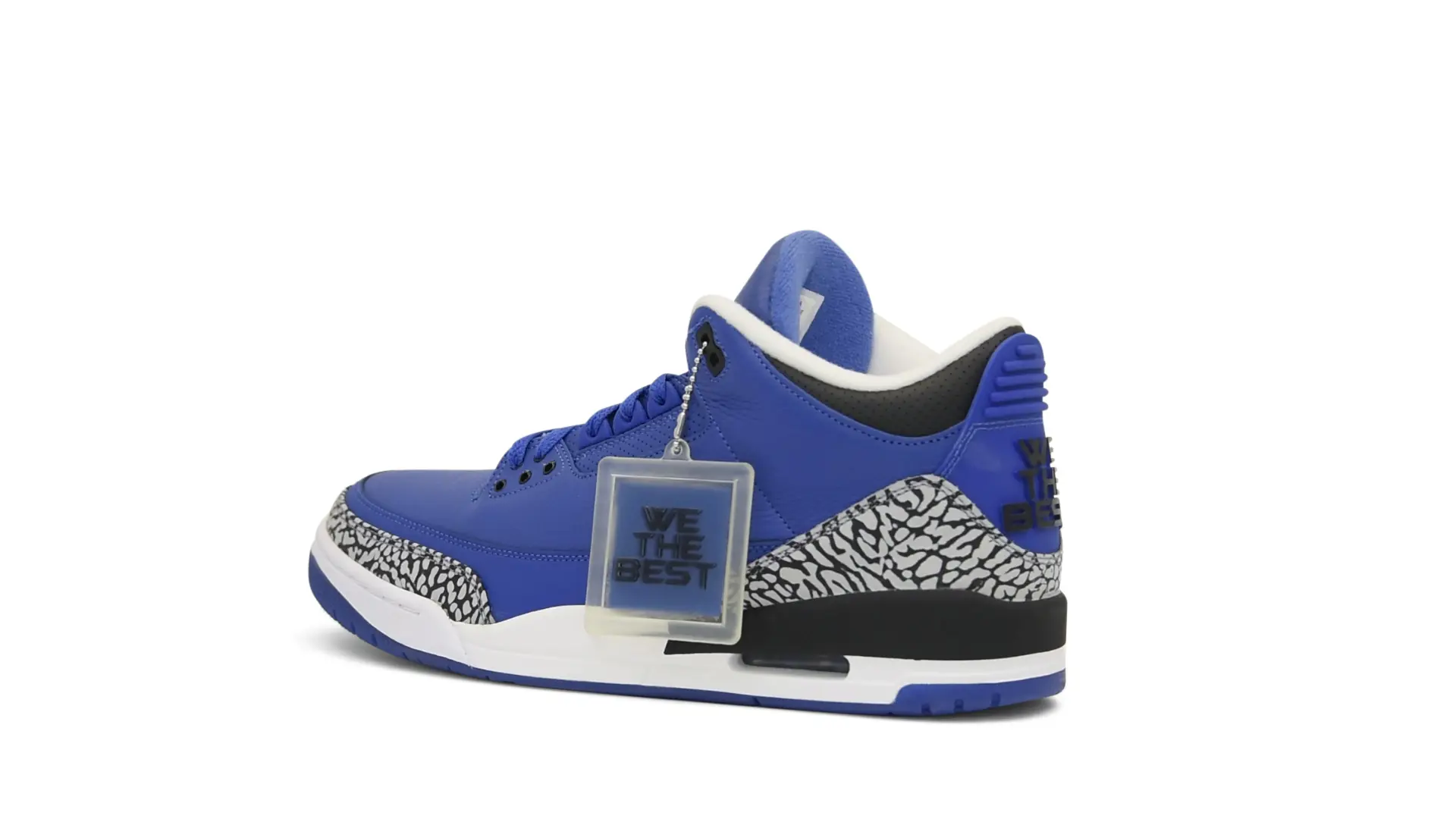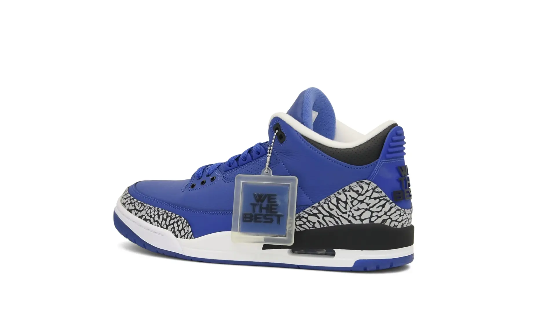 The “Another One” features a grain leather upper in Royal Blue, with overlays of grey elephant print and accents of black and white. Completed with a “We The Best” heel tab and hang tag, the Nike Air Jordan 3 Retro DJ Khaled Another One never saw a wider public release, and the samples were given to friends & family, making them incredibly rare.