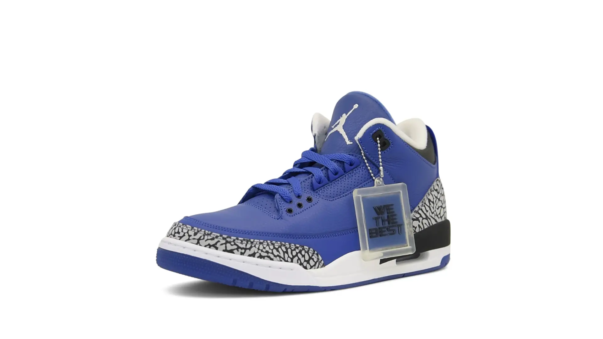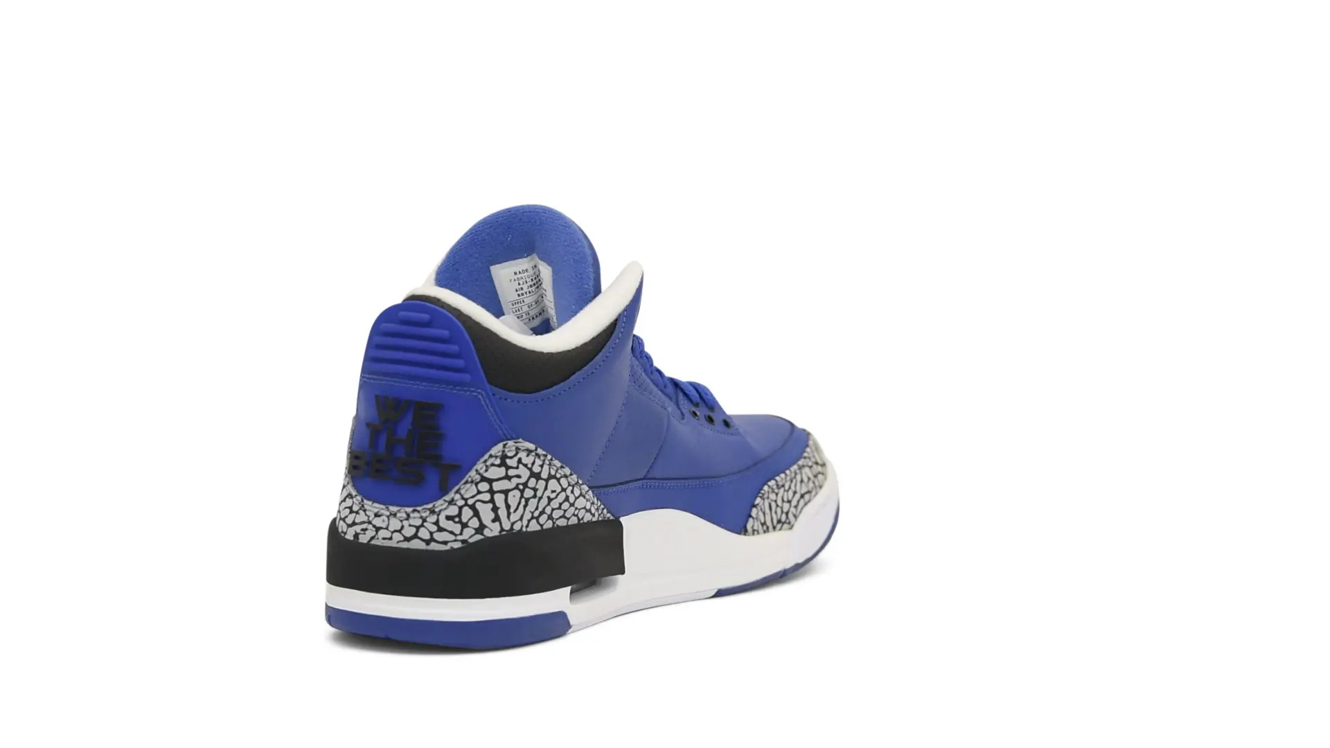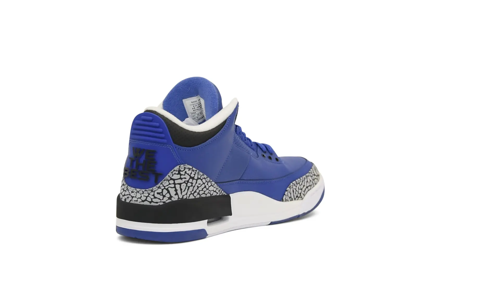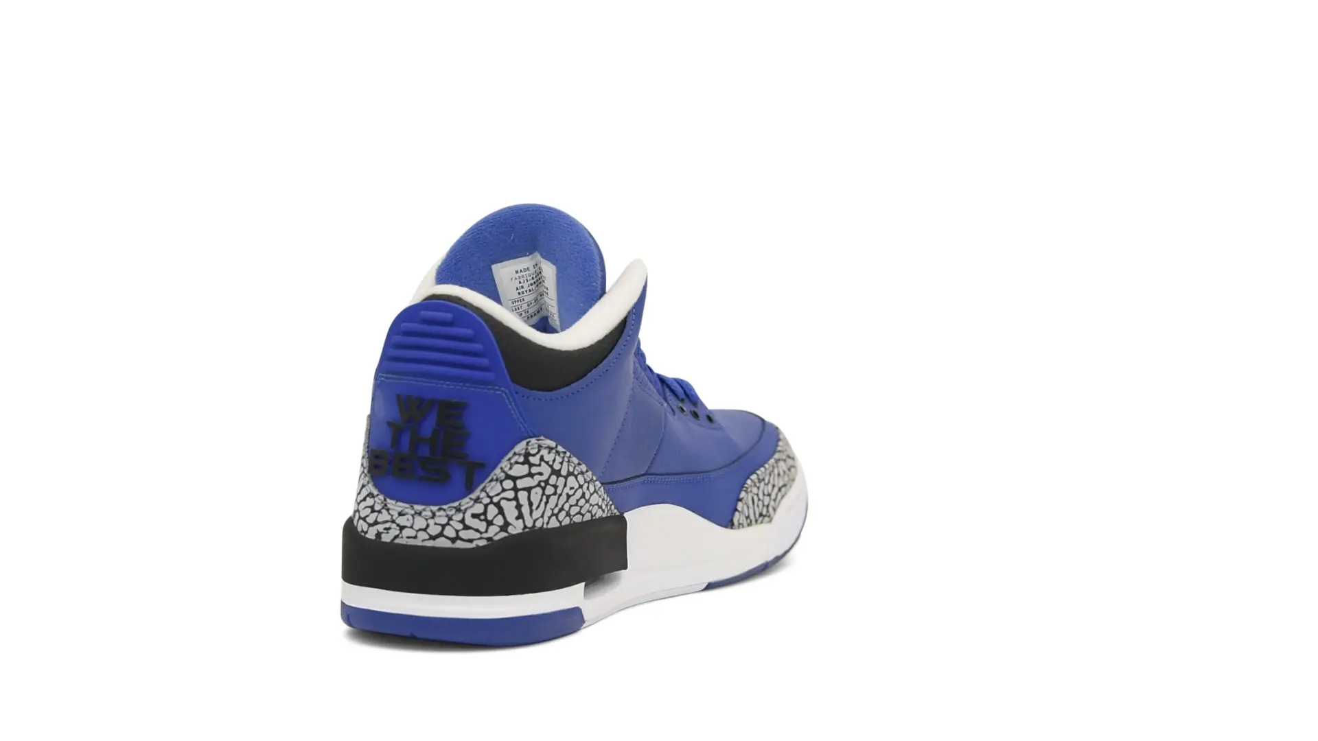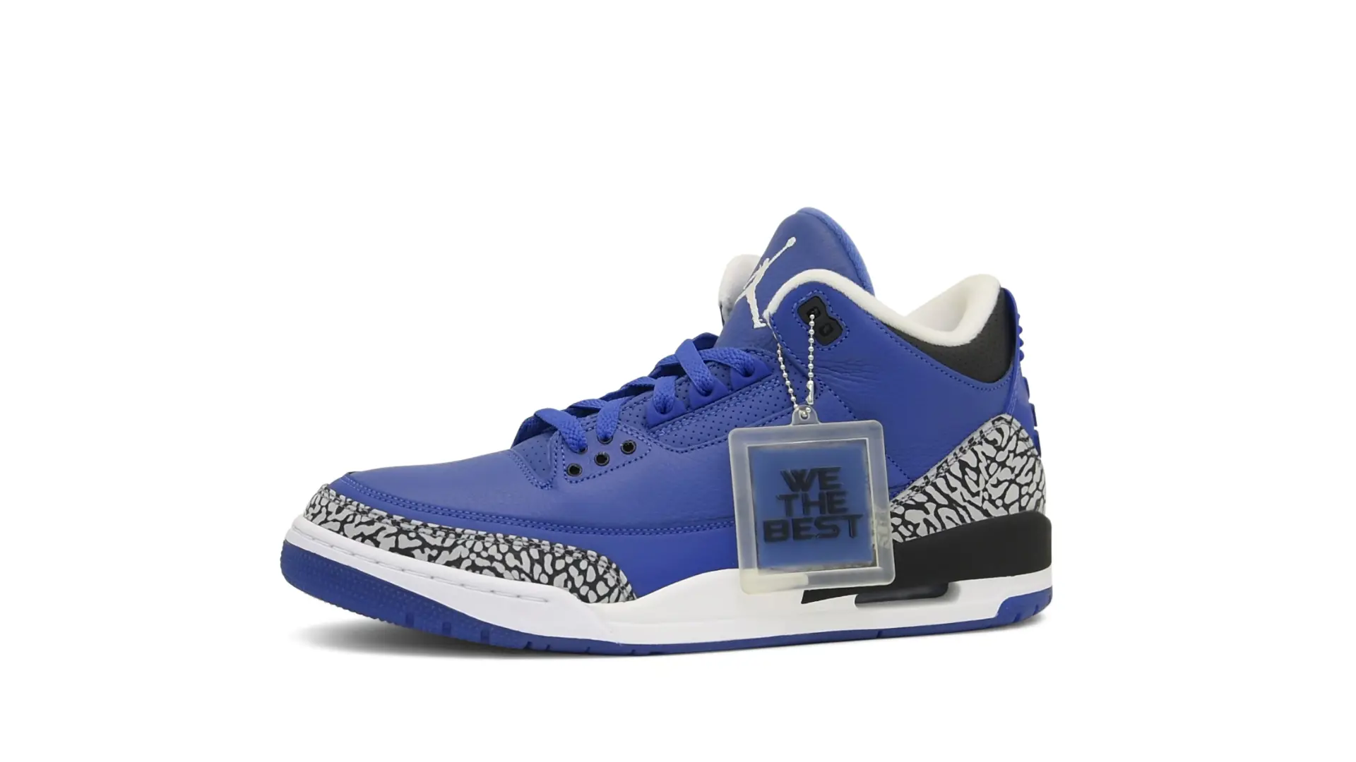 The “Another One” features a grain leather upper in Royal Blue, with overlays of grey elephant print and accents of black and white. Completed with a “We The Best” heel tab and hang tag, the Nike Air Jordan 3 Retro DJ Khaled Another One never saw a wider public release, and the samples were given to friends & family, making them incredibly rare.