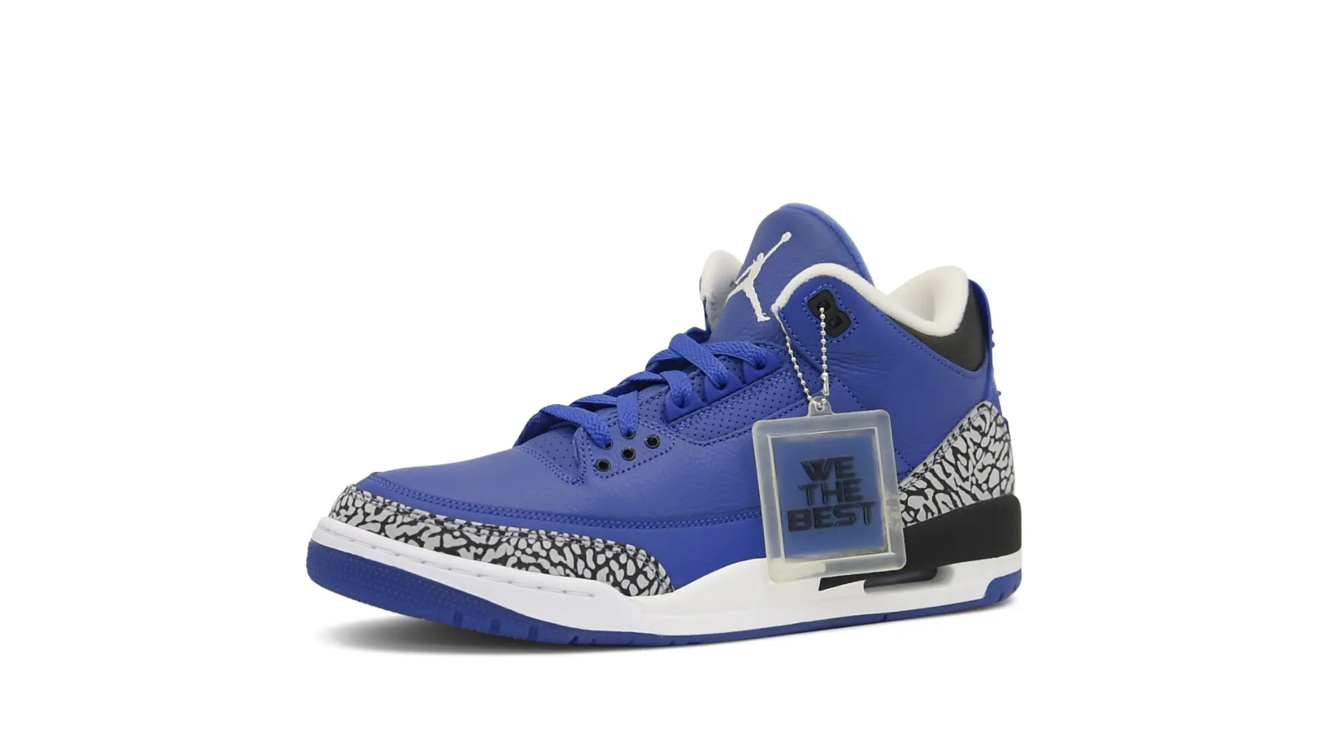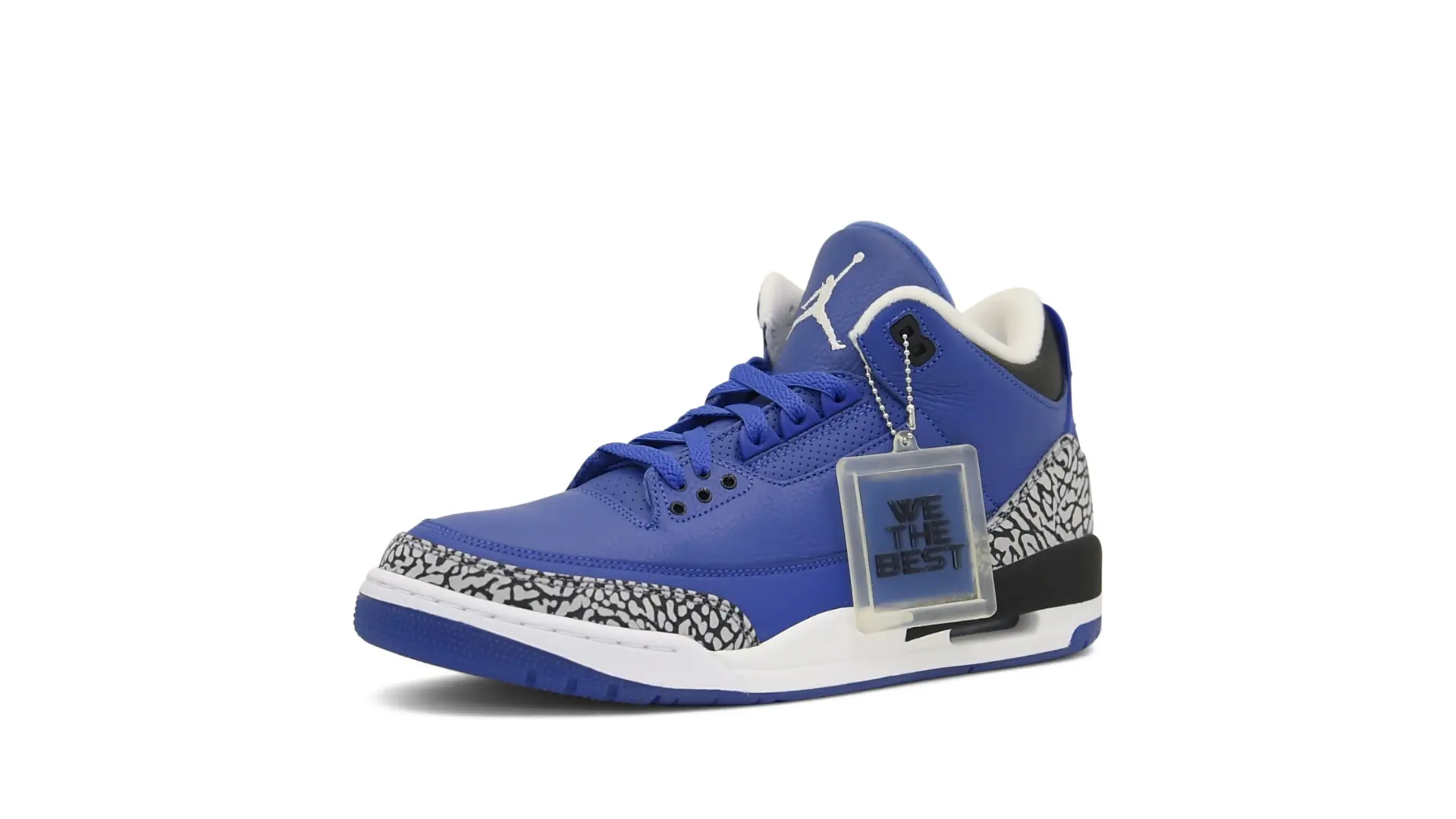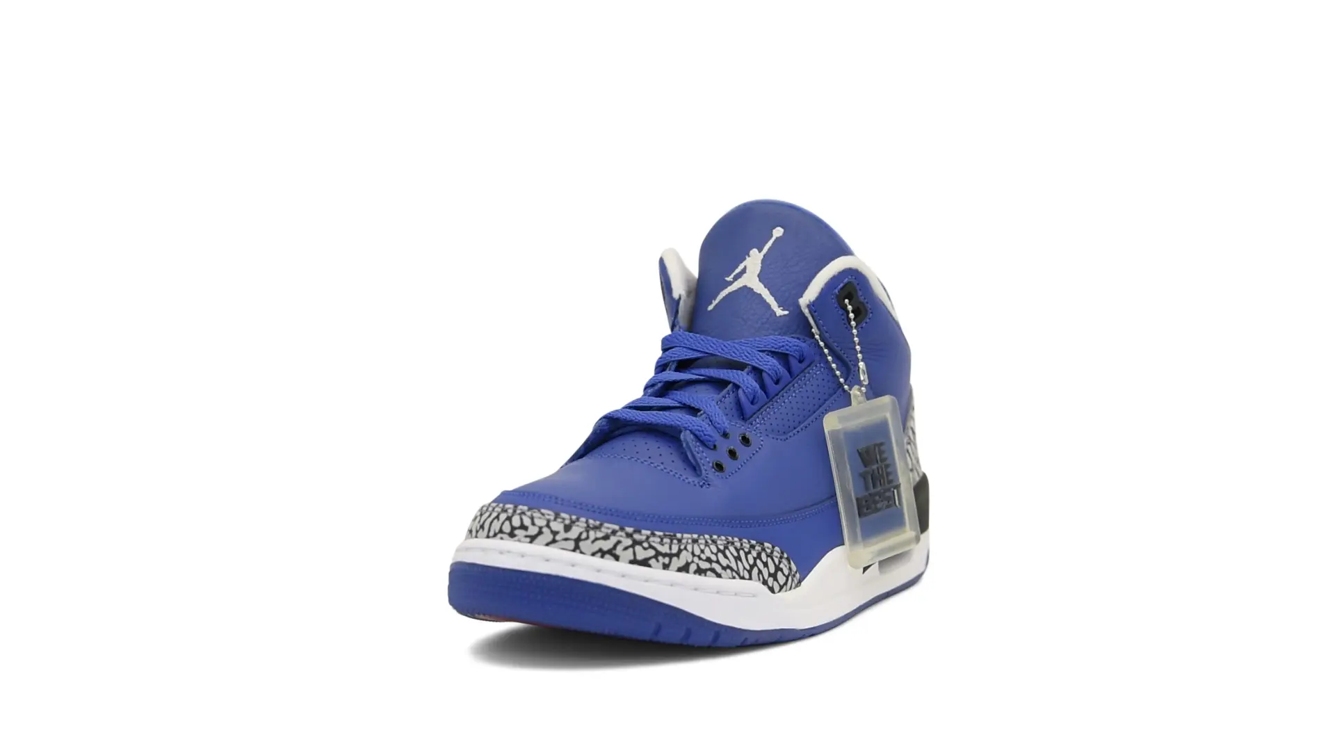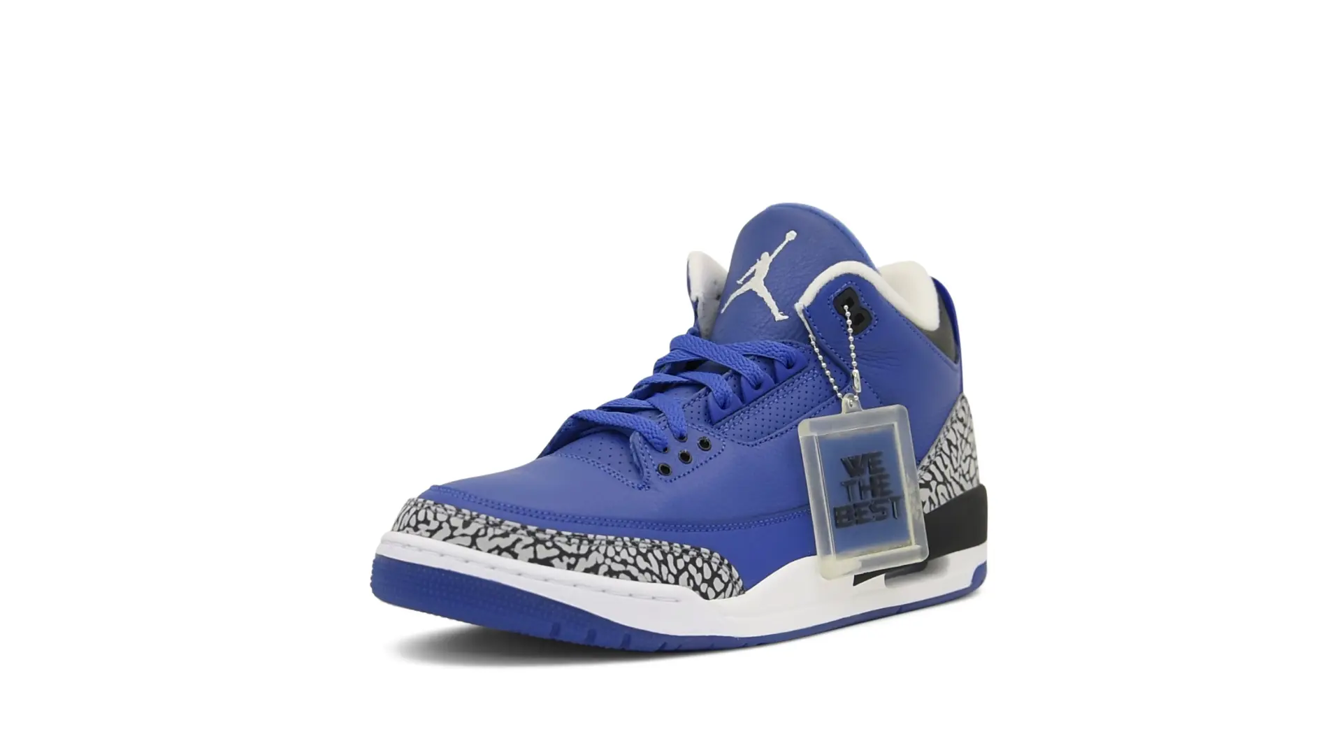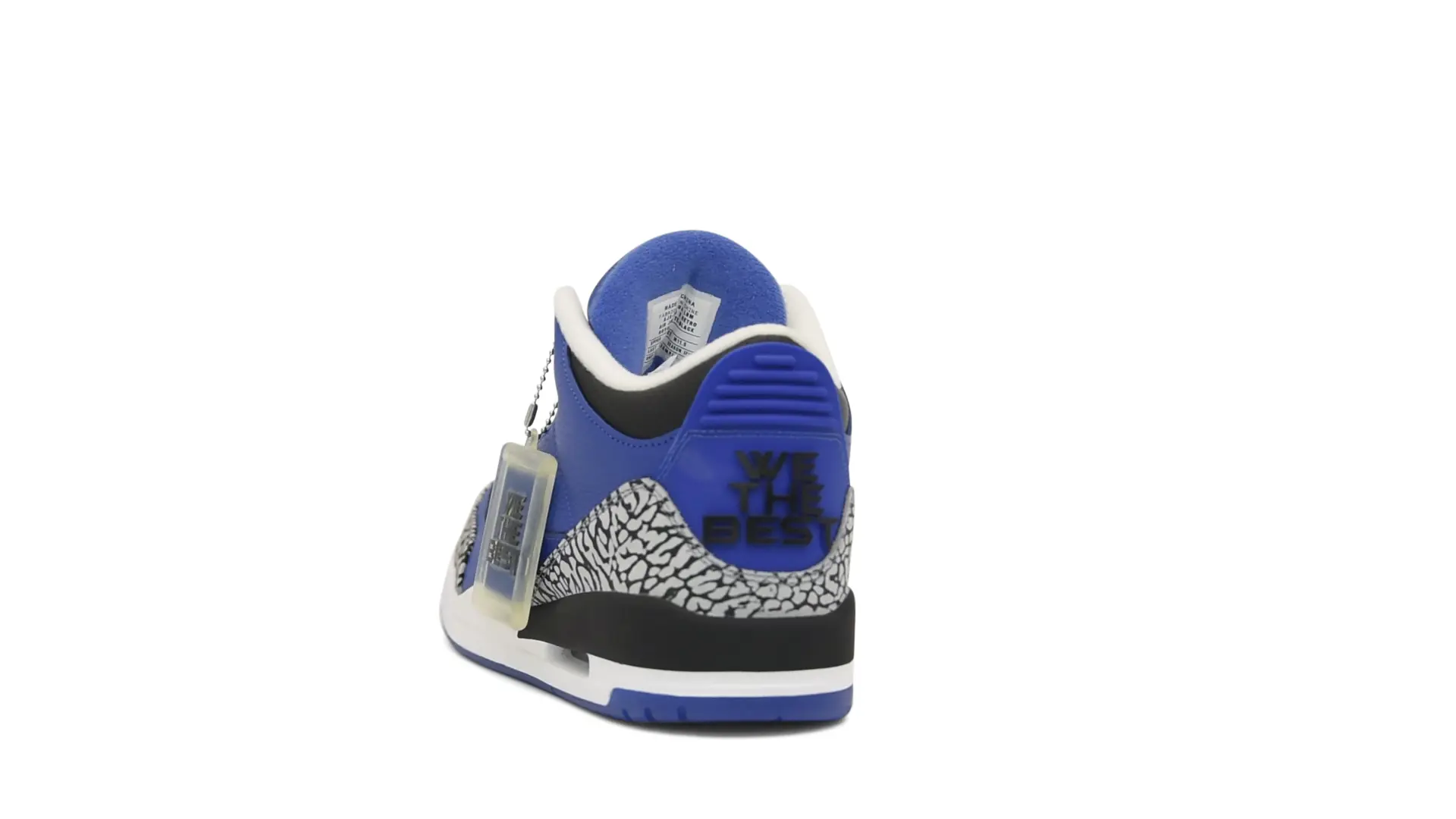 The “Another One” features a grain leather upper in Royal Blue, with overlays of grey elephant print and accents of black and white. Completed with a “We The Best” heel tab and hang tag, the Nike Air Jordan 3 Retro DJ Khaled Another One never saw a wider public release, and the samples were given to friends & family, making them incredibly rare.