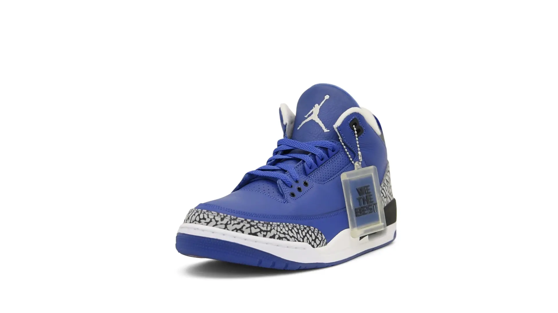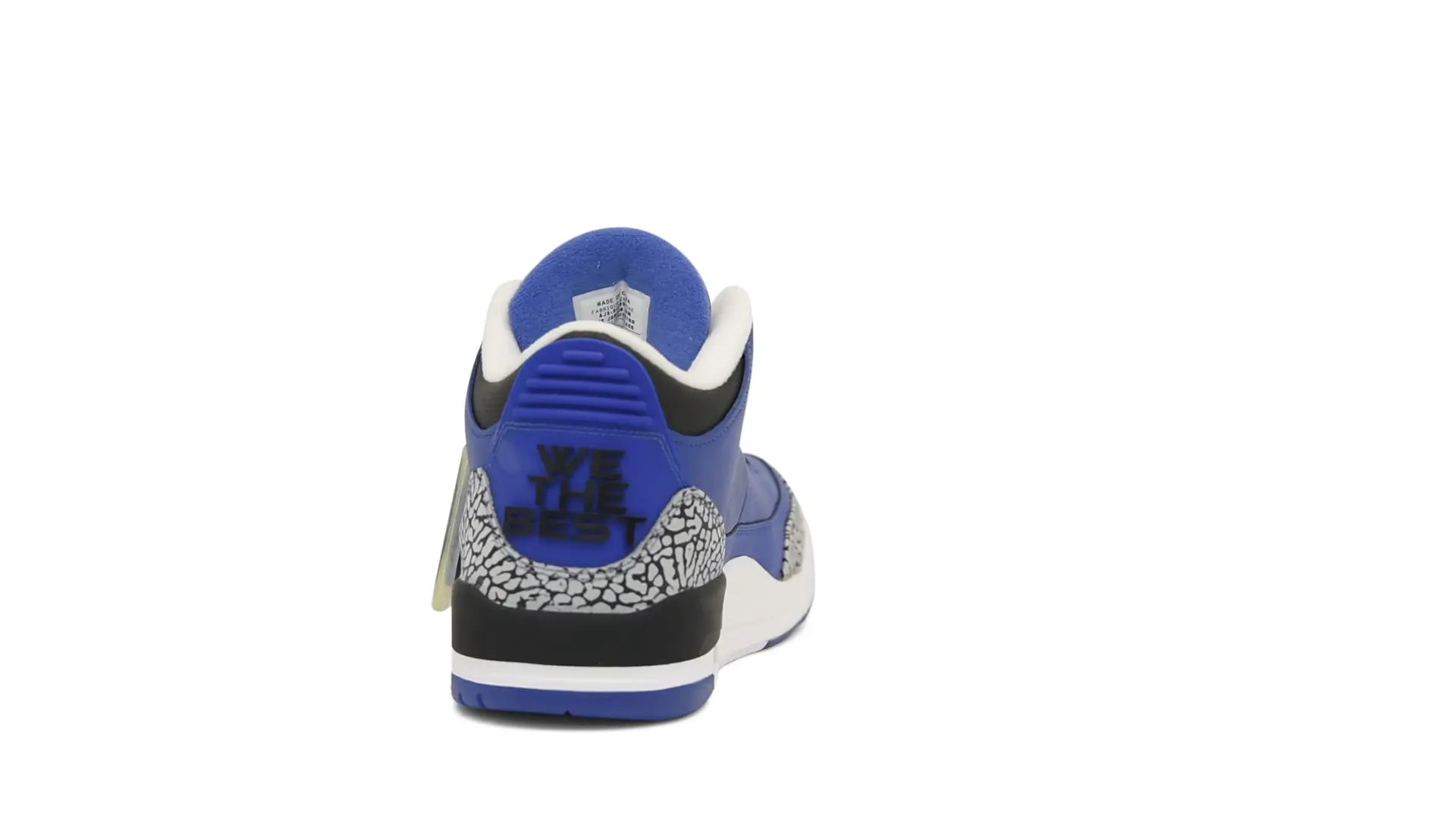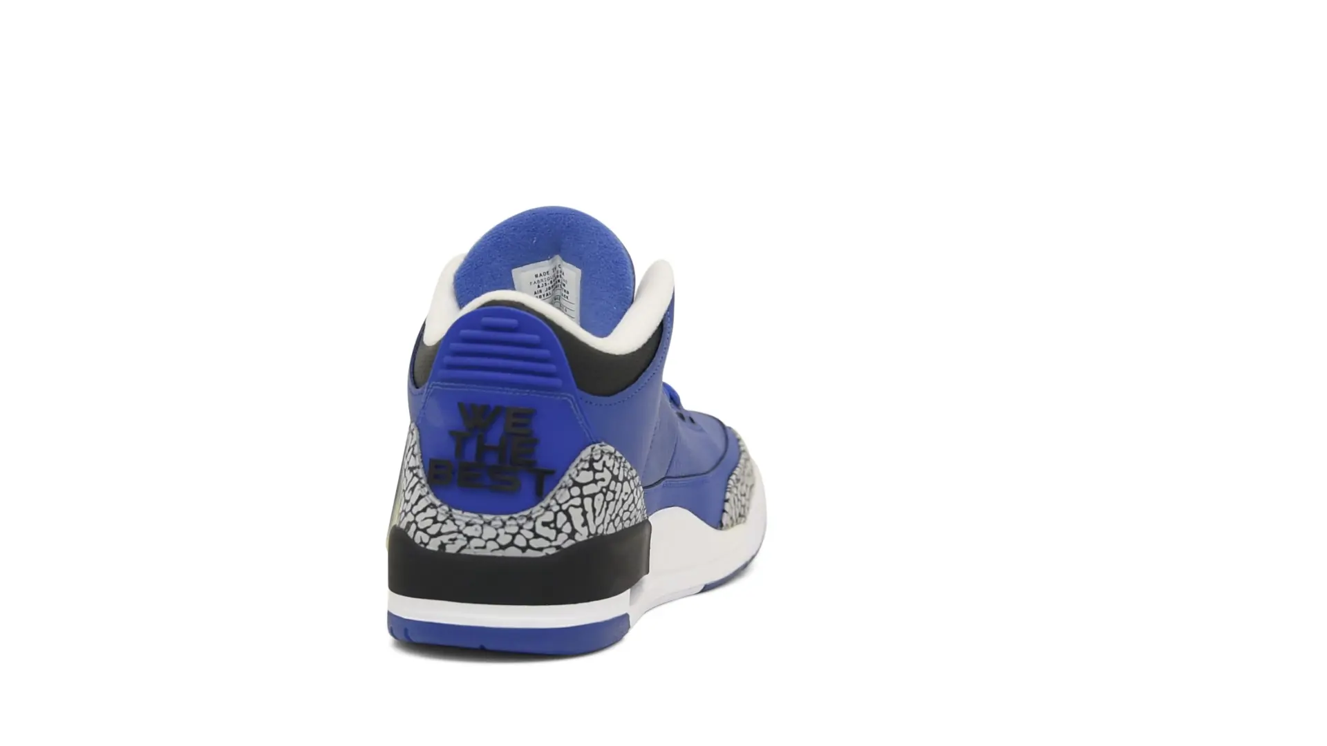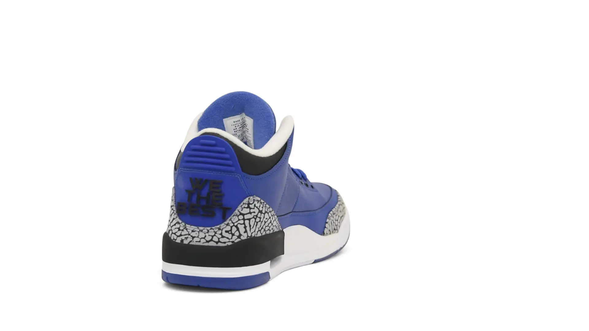 The “Another One” features a grain leather upper in Royal Blue, with overlays of grey elephant print and accents of black and white. Completed with a “We The Best” heel tab and hang tag, the Nike Air Jordan 3 Retro DJ Khaled Another One never saw a wider public release, and the samples were given to friends & family, making them incredibly rare.