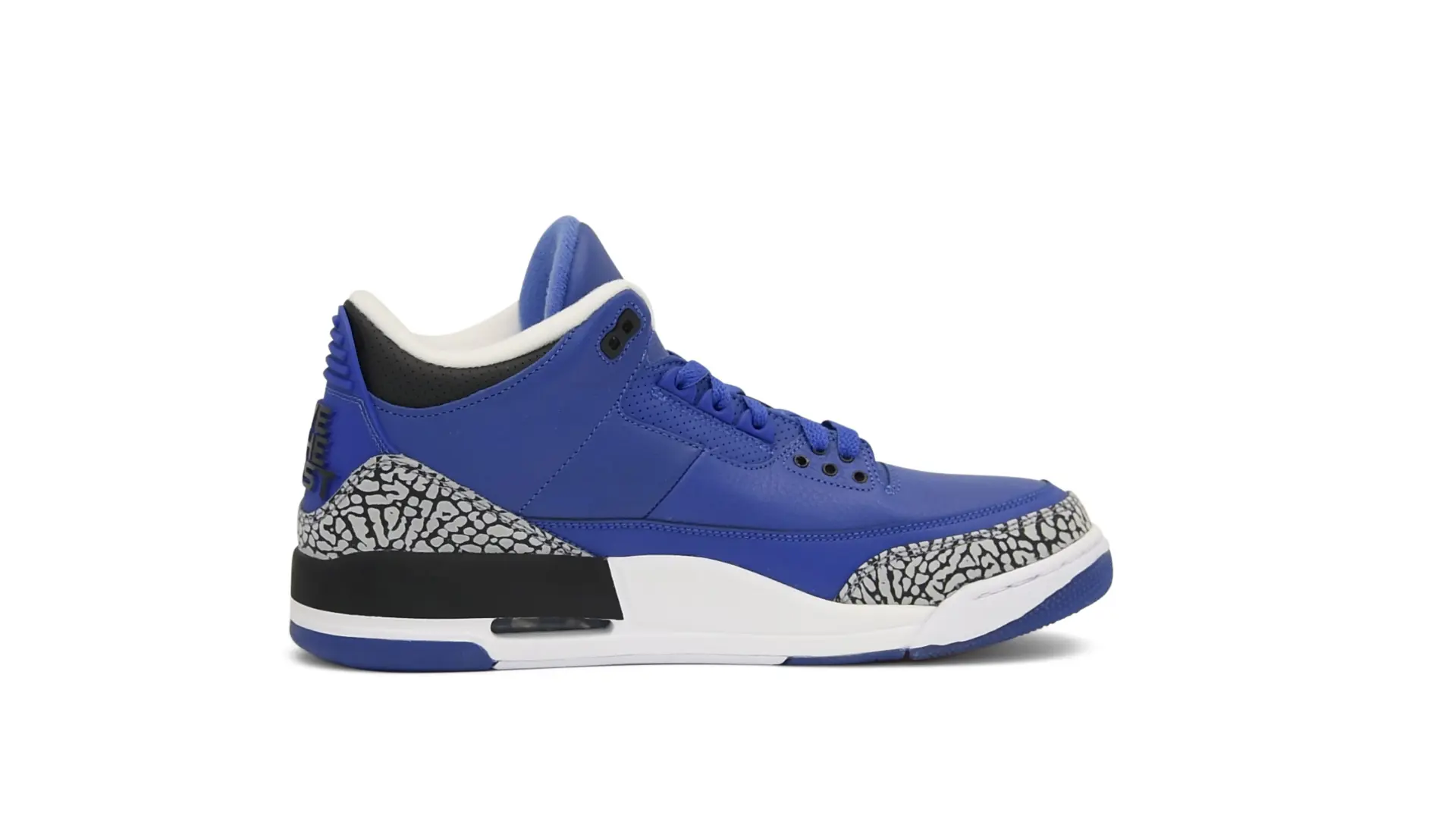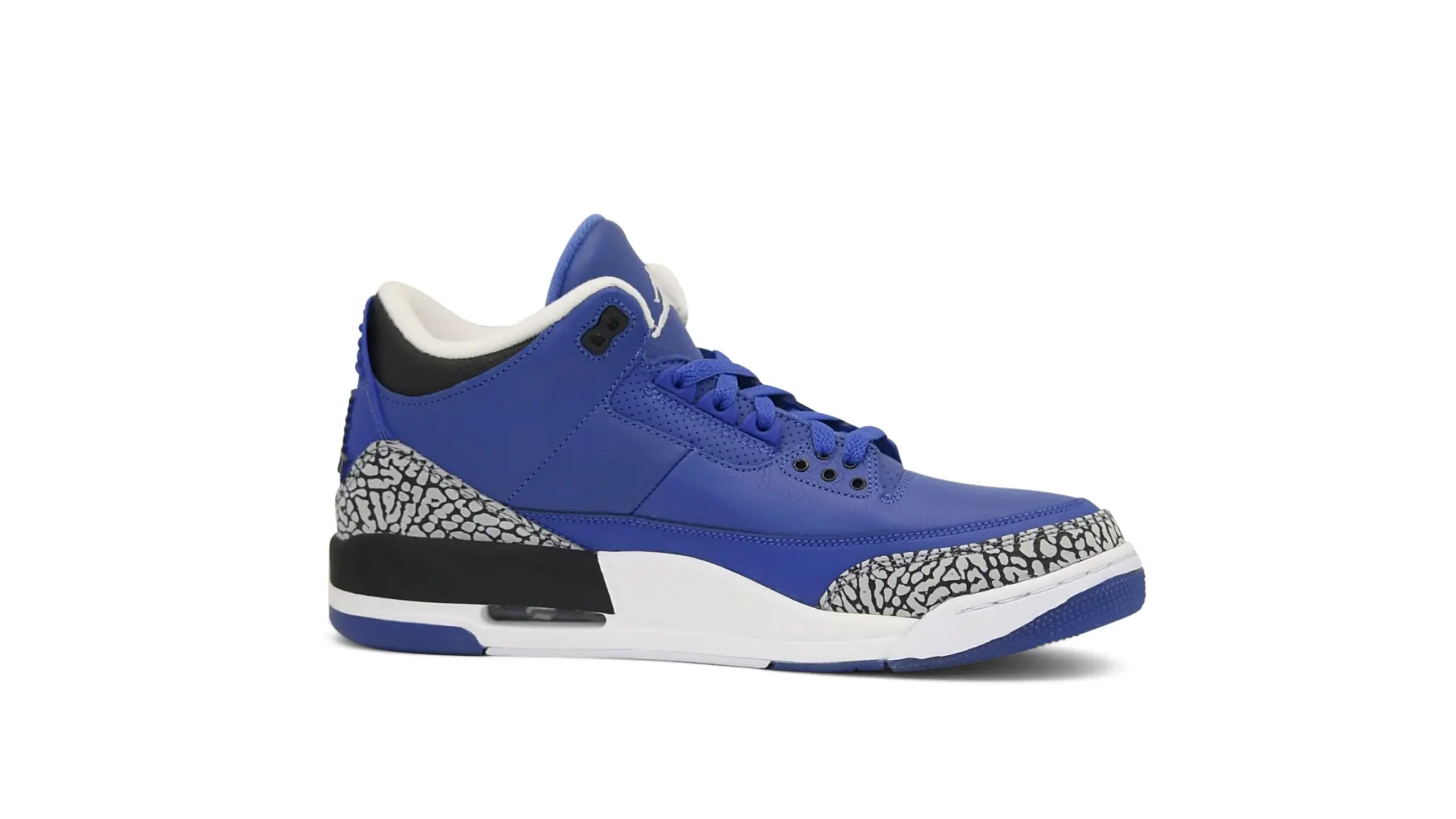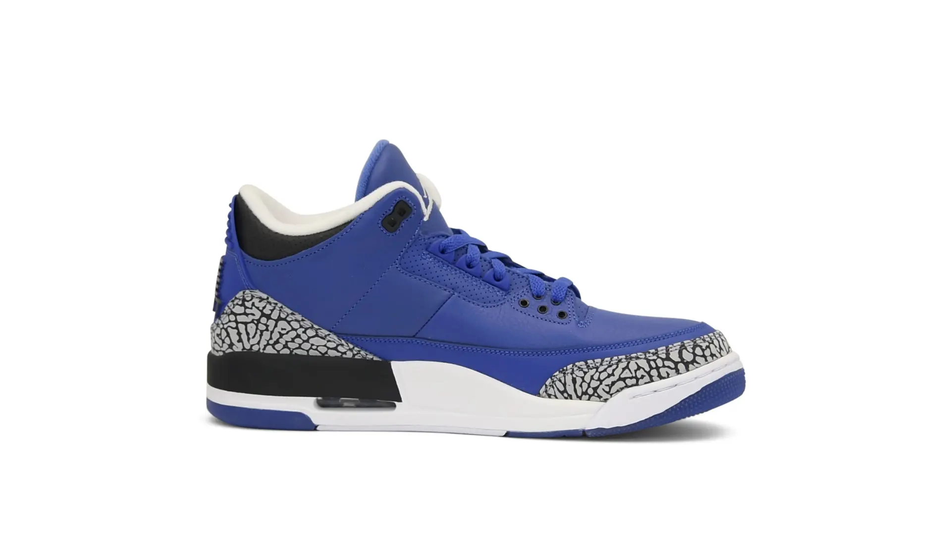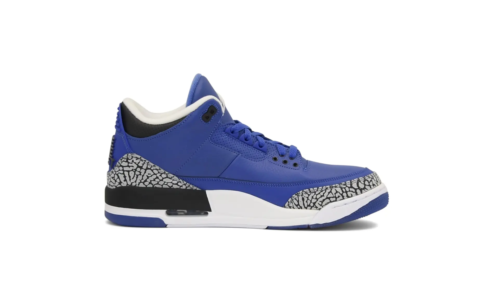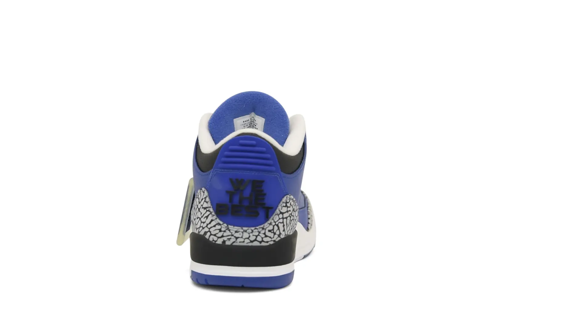 The “Another One” features a grain leather upper in Royal Blue, with overlays of grey elephant print and accents of black and white. Completed with a “We The Best” heel tab and hang tag, the Nike Air Jordan 3 Retro DJ Khaled Another One never saw a wider public release, and the samples were given to friends & family, making them incredibly rare.