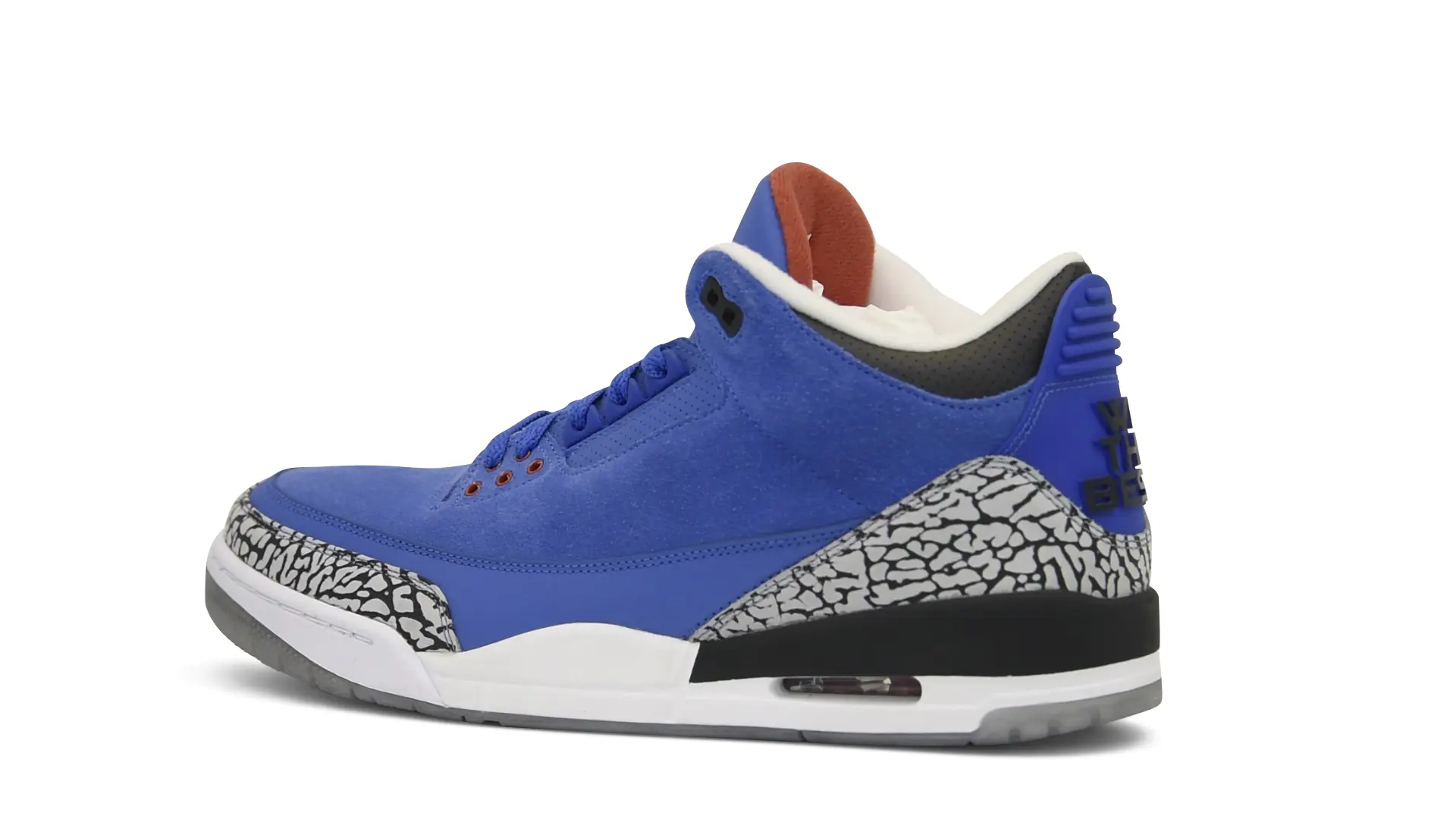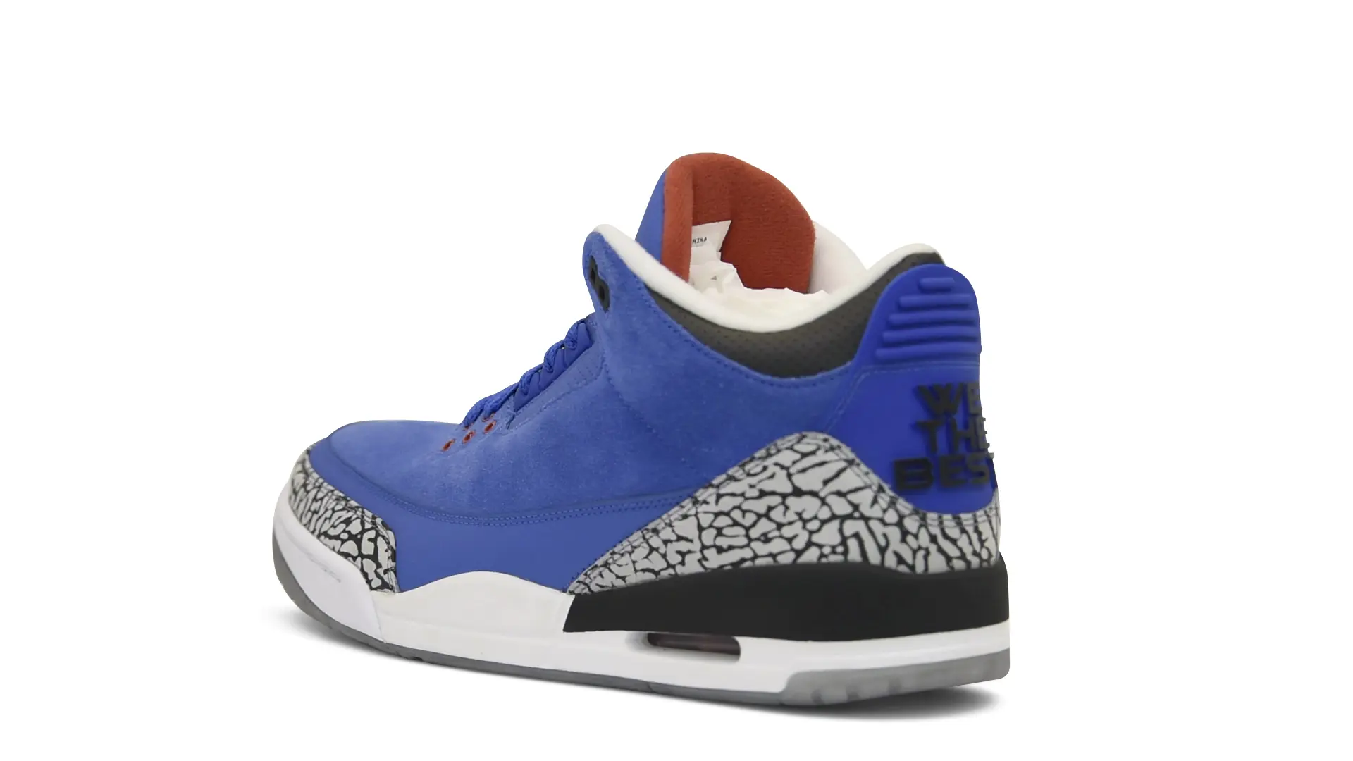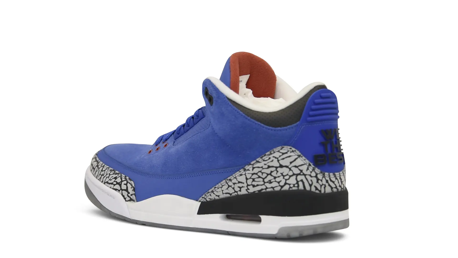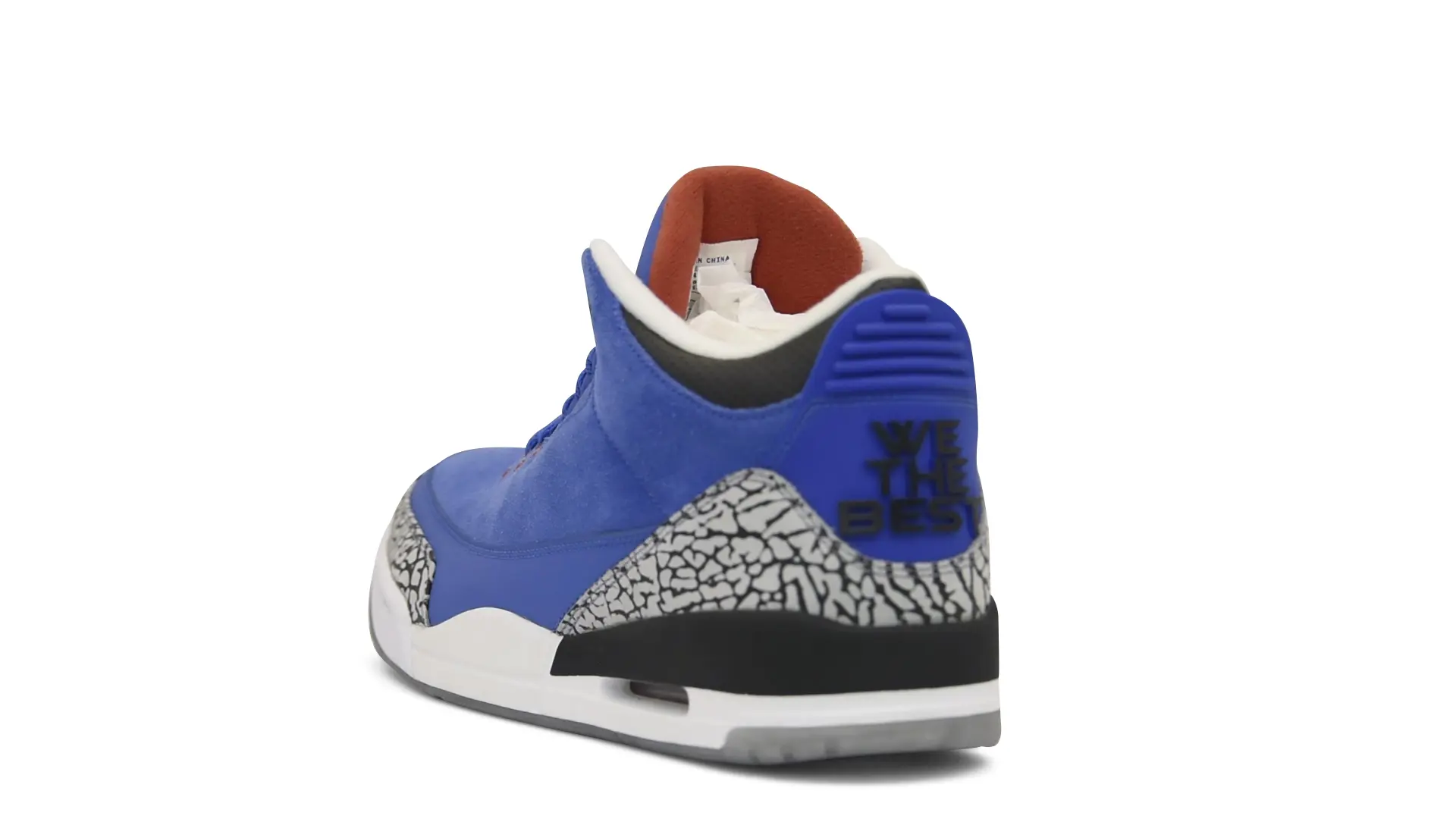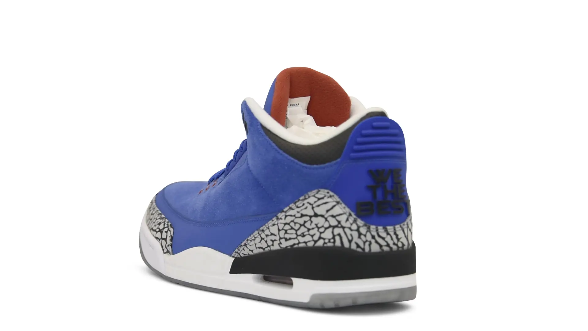 This very rare friends and family Air Jordan III ‘Father of Asahd’ was made exclusively for DJ Khaled’s network. This 2018 pair served as a follow up to DJ Khaled’s ‘We the Best’ Air Jordan III’s. Named after DJ Khaled’s album “Father of Asahd” the sneaker features the iconic ‘We the Best’ logos on the left heel and inside the shoe.