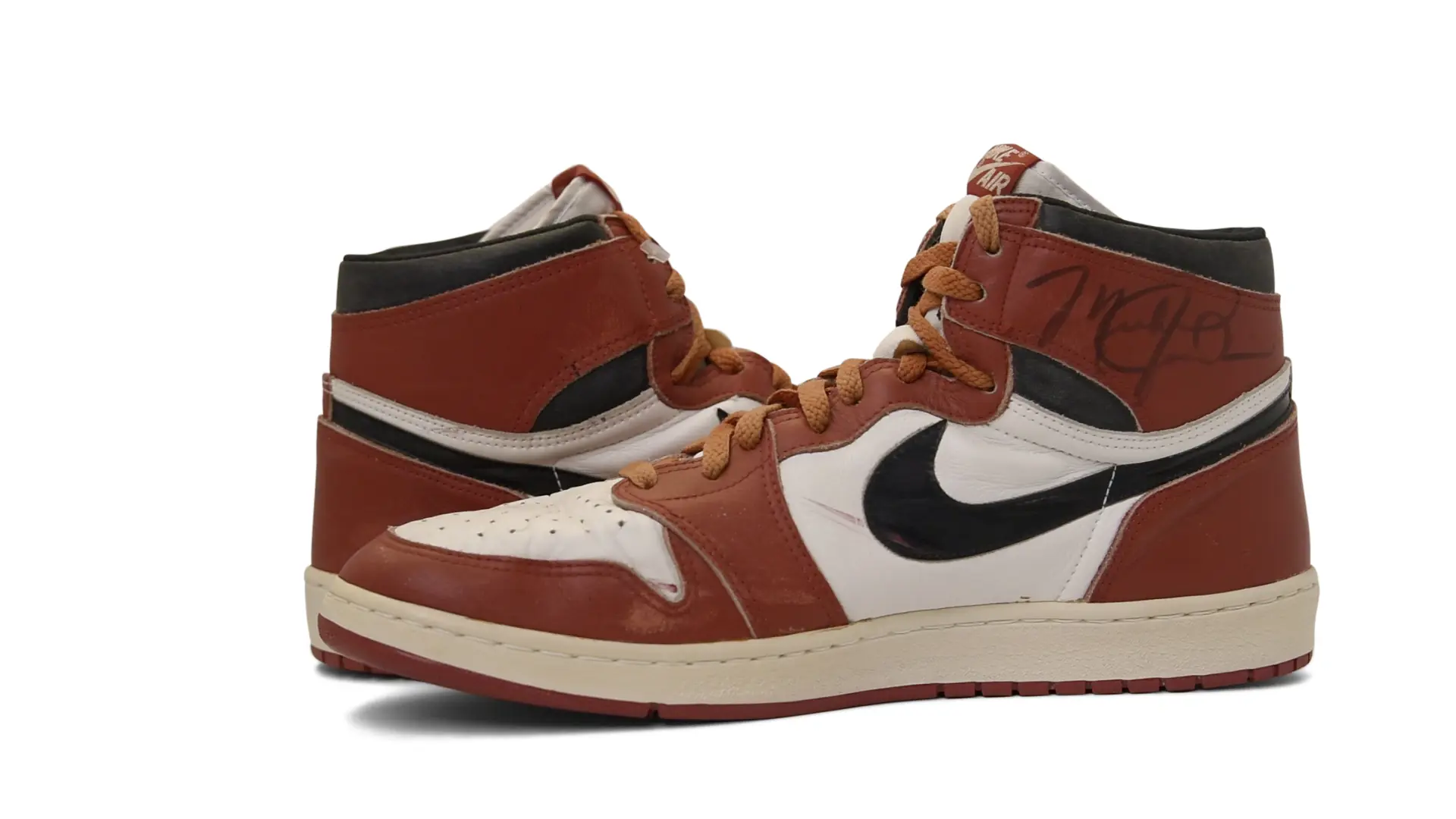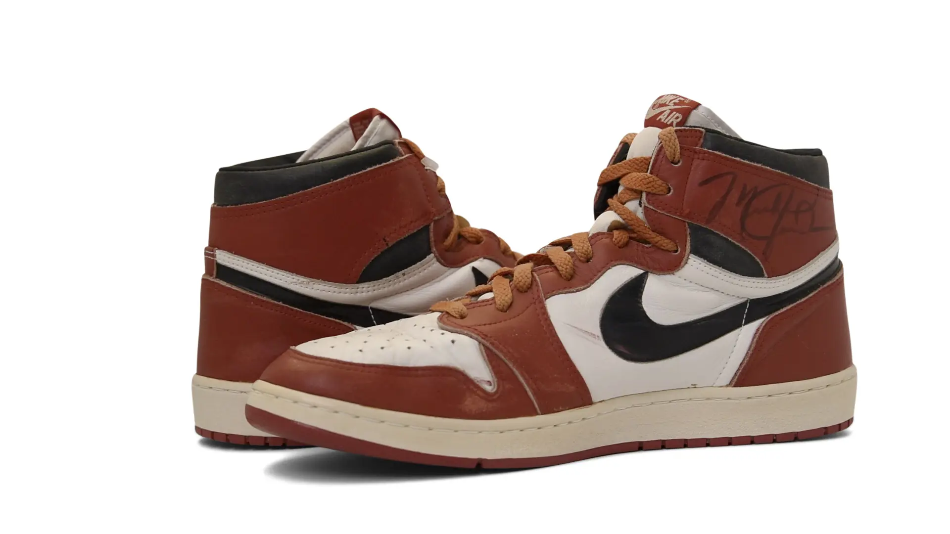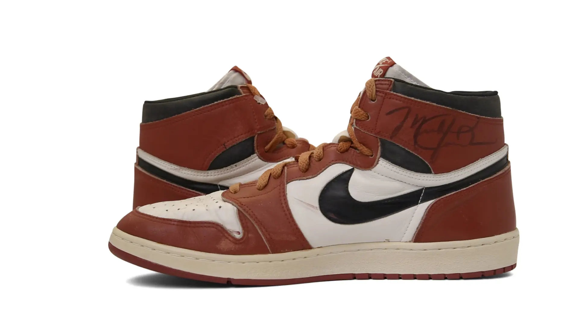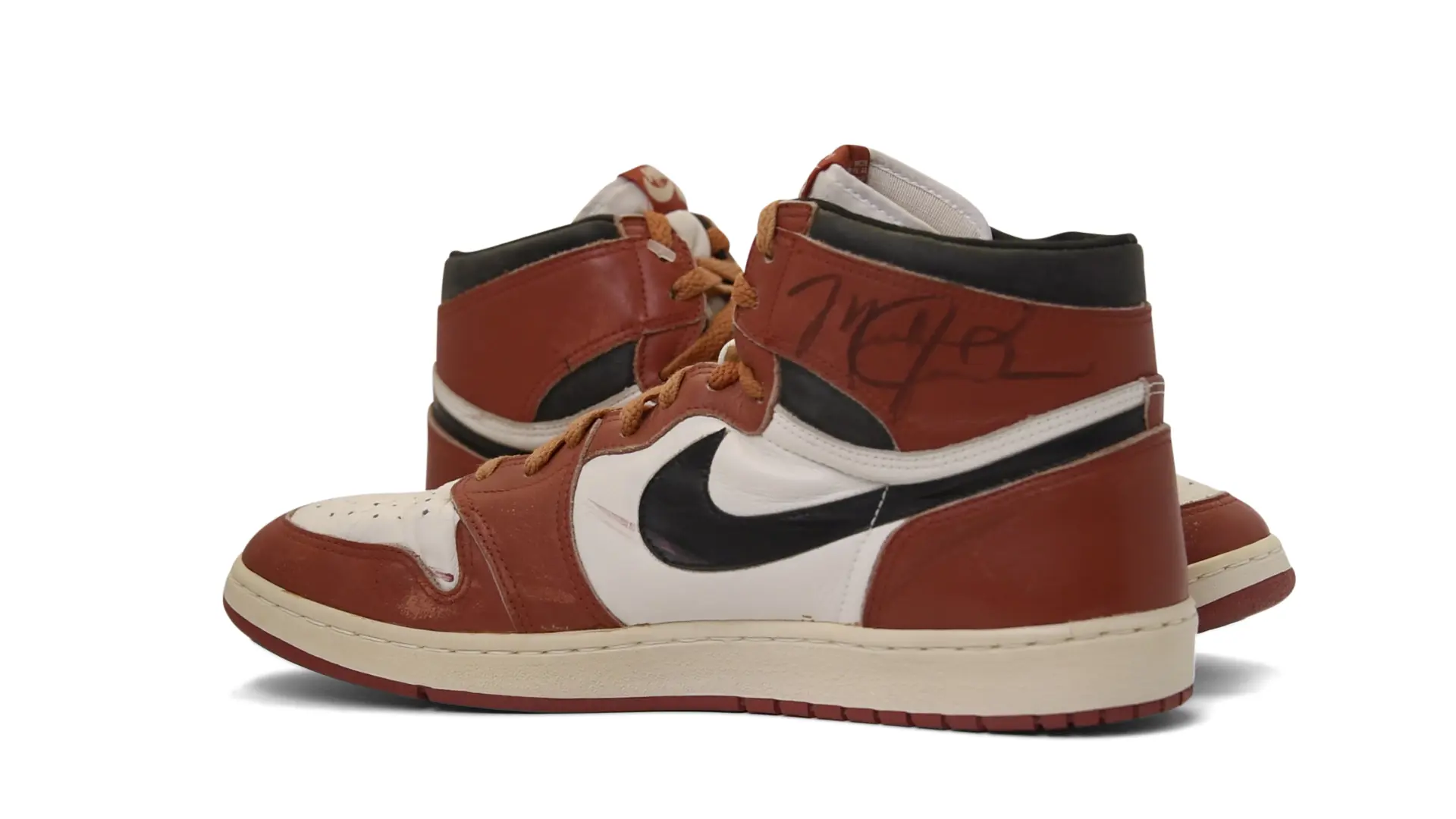 The Nike “Air Jordan” is one of the most iconic designs in the history of both streetwear and basketball and is a key part of the origin of the Air Jordan brand for Nike. Designed by Peter Moore, Michael Jordan wore Air Jordan 1s in 1984 and 1985, as well as modified versions in 1986 (after a broken foot Michael endured). These specific shoes are the iconic "Chicago" colorway, and perhaps the most recognizable for Michael, as well as the Nike brand.