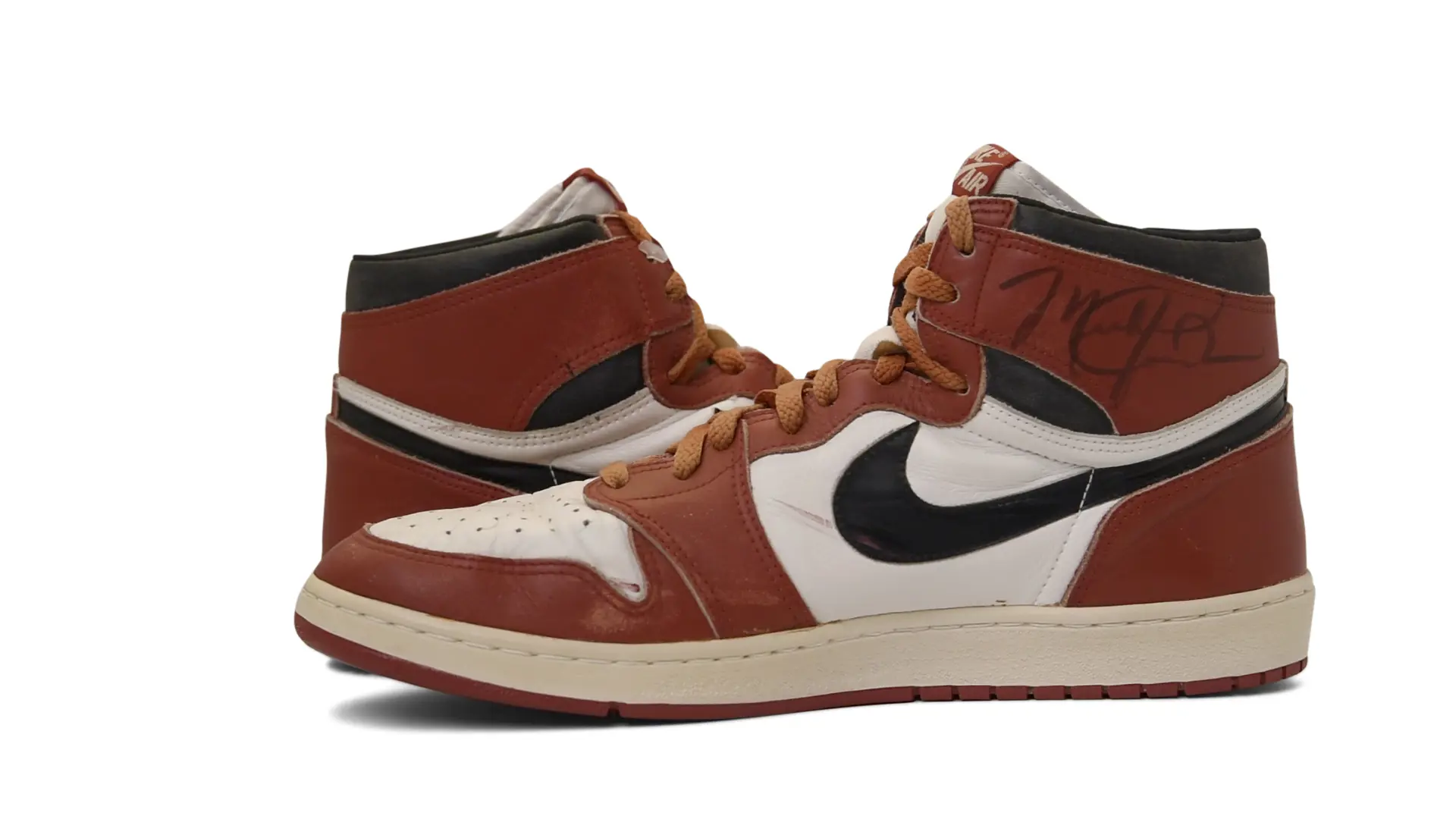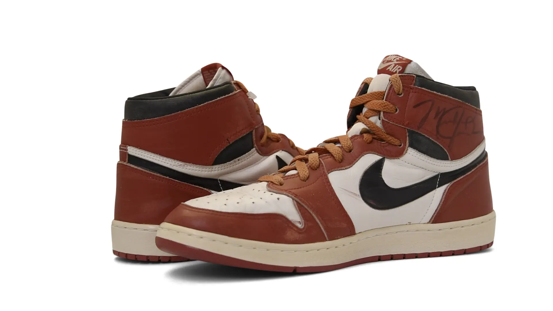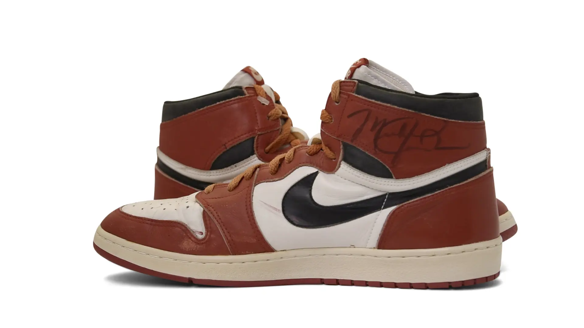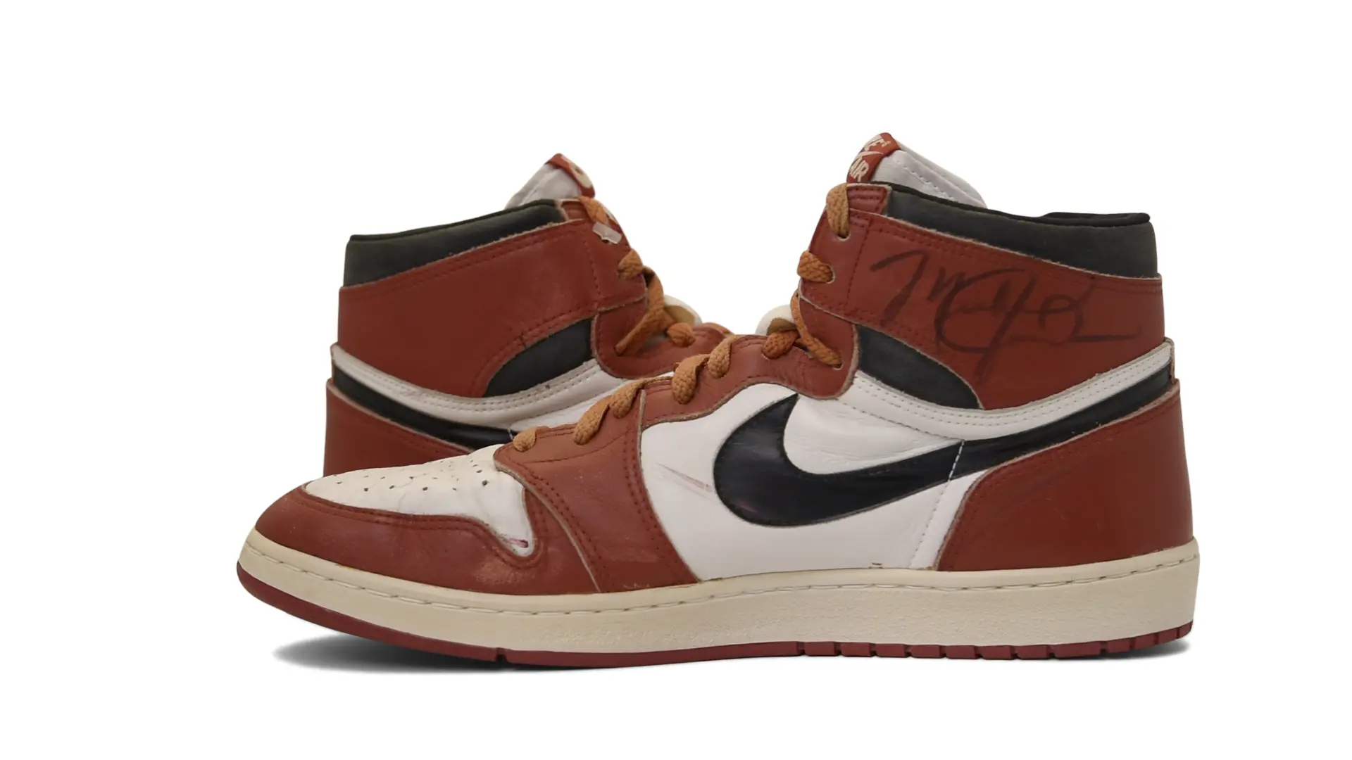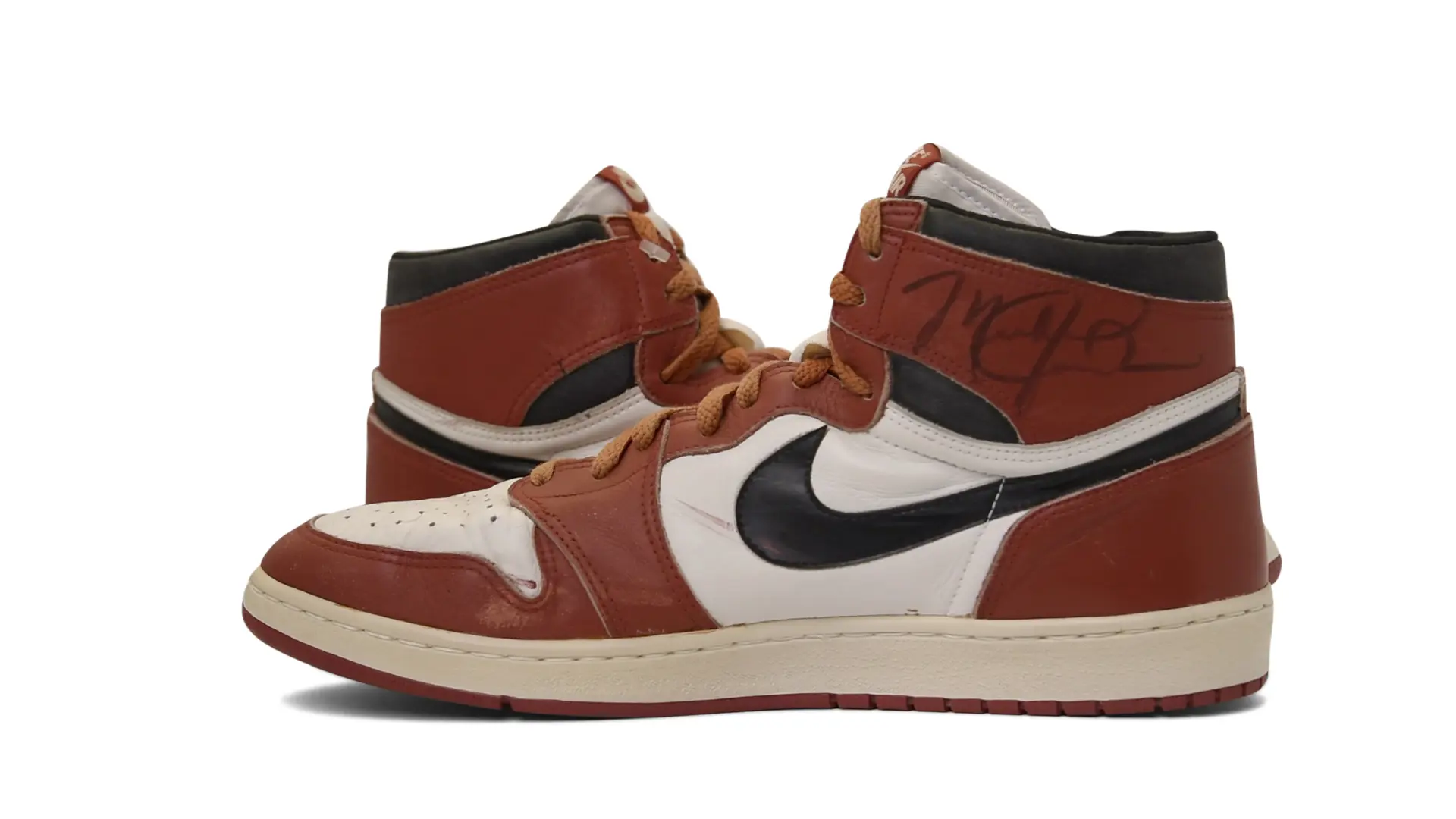 The Nike “Air Jordan” is one of the most iconic designs in the history of both streetwear and basketball and is a key part of the origin of the Air Jordan brand for Nike. Designed by Peter Moore, Michael Jordan wore Air Jordan 1s in 1984 and 1985, as well as modified versions in 1986 (after a broken foot Michael endured). These specific shoes are the iconic "Chicago" colorway, and perhaps the most recognizable for Michael, as well as the Nike brand.